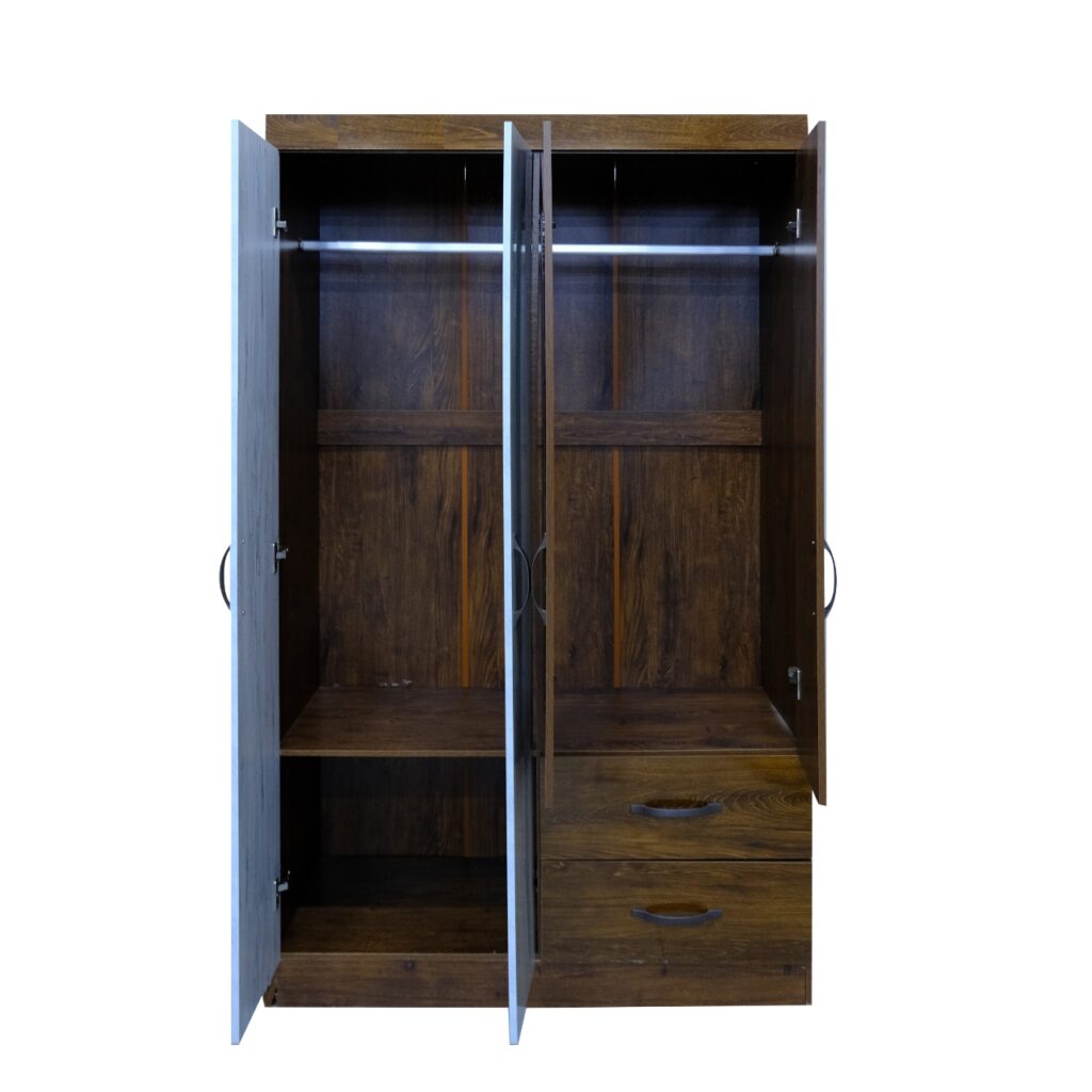 - Four Doors with Mirrored Panels: Provides easy access and enhances room brightness.