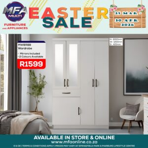Create a stylish and organised bedroom with the 4 Door High Gloss Wardrobe. Made from durable 15mm MDF particle board and finished in a sleek high-gloss surface, this wardrobe offers generous storage space while enhancing modern interiors. Available in White, Champagne, and Cappuccino, it is designed for both elegance and everyday use.