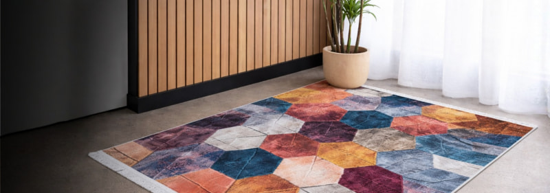 Geometric Charcoal Grey & Black Printed Rug – CPR2230