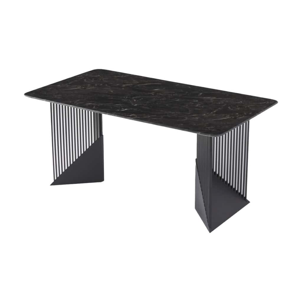 Black Marble Dining Table with Modern Metal Base