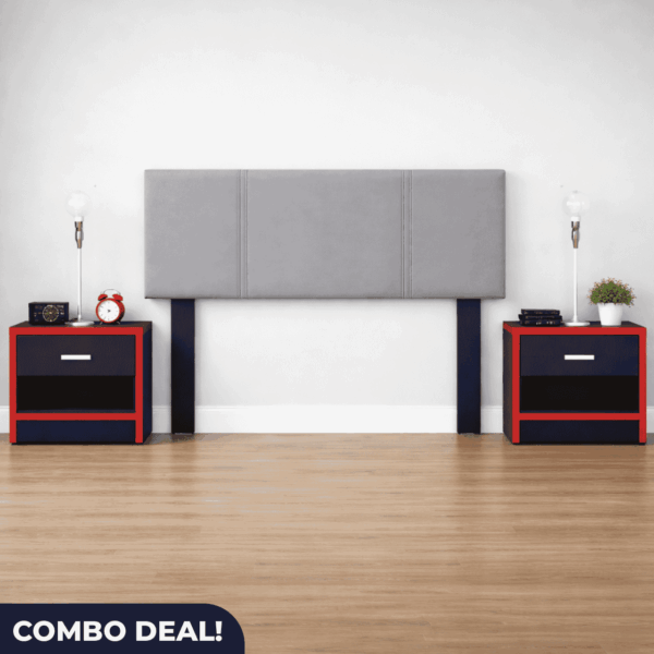 Vanessa 3-Piece Bedroom Combo – Headboard & 2 Nightstands (Black & Red)
