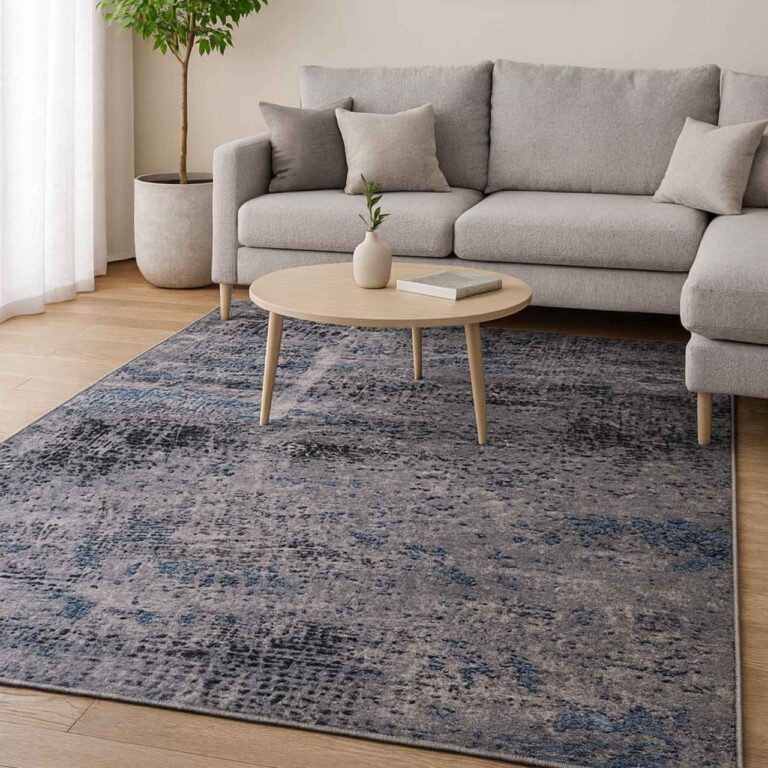 The Ankara Urban Mist Rug – 0985C features layered grey and blue tones with a contemporary abstract design that adds depth and sophistication to any space. Durable, soft underfoot, and easy to maintain, this modern area rug is ideal for living rooms, bedrooms, and hallways. Available in 160×230, 200×300, and 80×200 sizes.