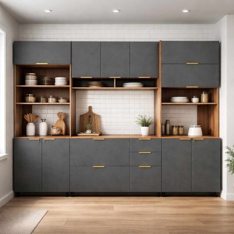 - Modern & Durable: Elevate your kitchen with our 3 Piece Metal Scheme featuring a sleek 6-door cabinet with a robust 4mm metal body.