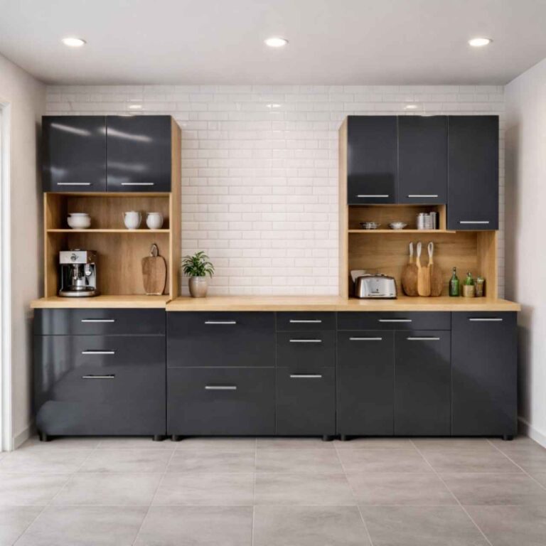 - Ample Storage: Includes cabinets, shelves, and drawers for organizing kitchen essentials.