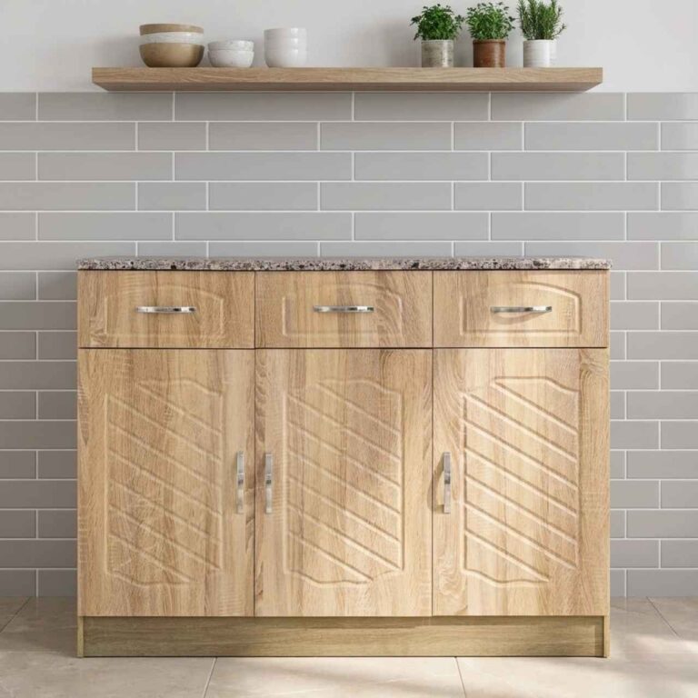 The PVC 3 Door Base High Gloss kitchen unit combines modern style with everyday practicality, featuring a sleek high-gloss finish, three spacious doors, and elegant silver lever handles for a refined look. Designed with a granite top look for added sophistication, it is crafted from durable high-quality wood making it a stylish and functional base unit for contemporary kitchens.