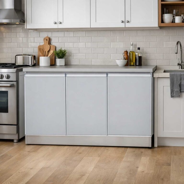 The Contemporary Metal 4 Door Base is a modern storage unit featuring durable metal construction, four spacious compartments, and a smooth easy-to-clean surface. Ideal for kitchens, offices, or living spaces, it offers practical storage with a sleek contemporary design.