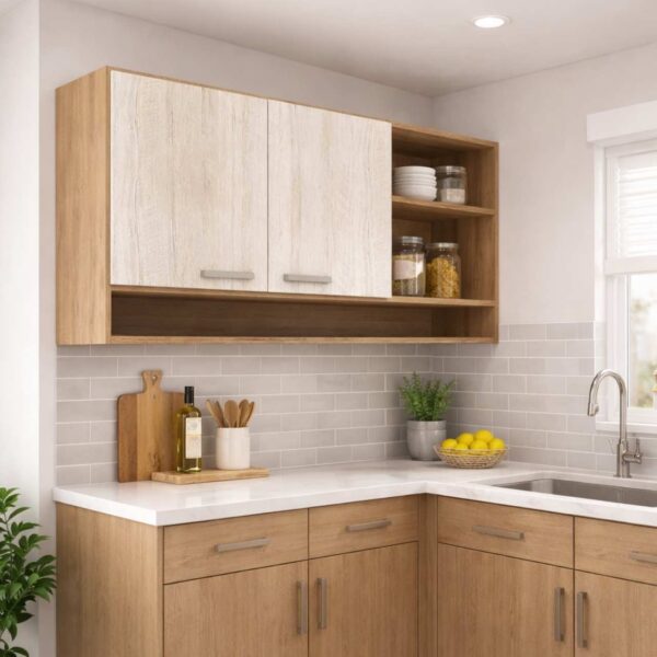 - Modern Elegance: Elevate your kitchen with a contemporary Light Grey and Sonama Oak finish.