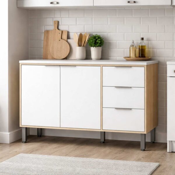 The Karine Base is a modern kitchen storage unit crafted from durable medium density particleboard, offering ample internal space for organised storage. With its clean, minimalist design and easy-to-maintain finish, it provides a stylish and practical solution for everyday kitchen use.