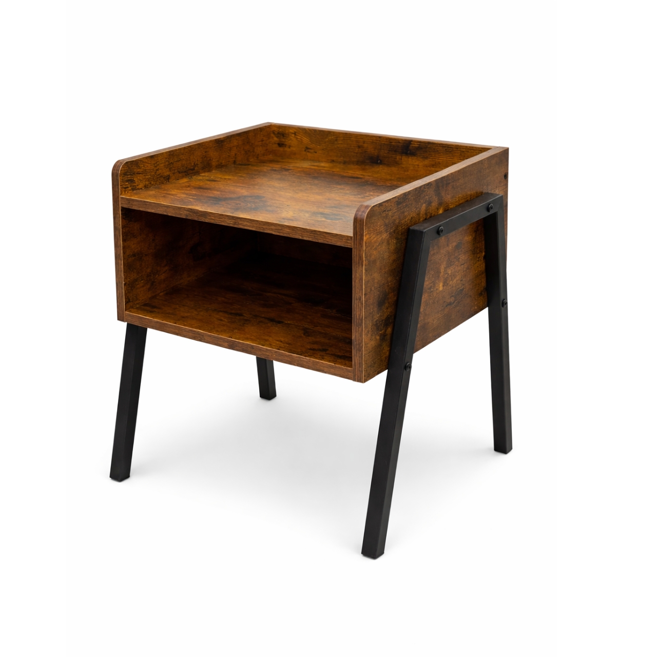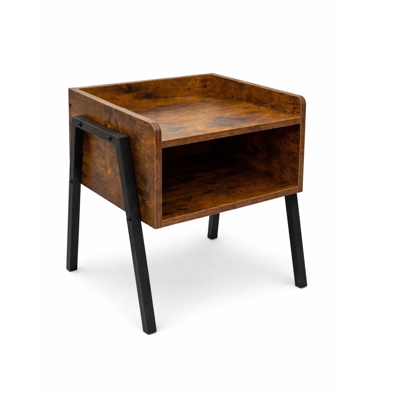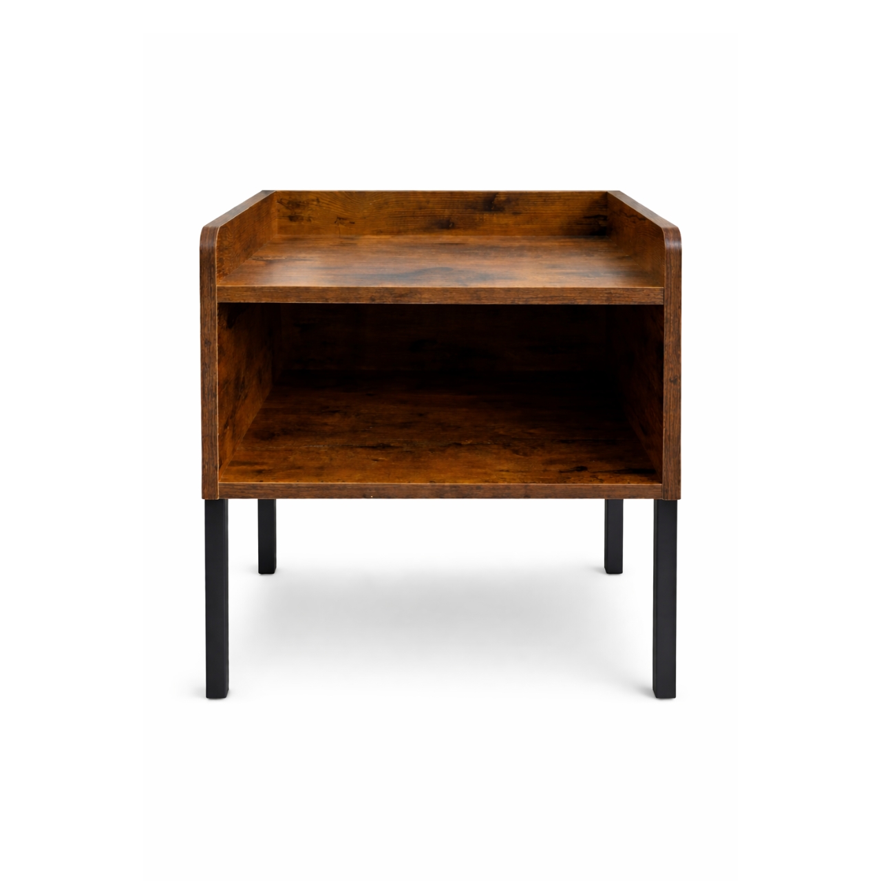 Enhance your bedroom or living space with the sleek and functional Modern Oak Night Stand. It is available in two timeless finishes: warm walnut and classic oak. This compact piece brings both style and practicality into any setting. Its clean silhouette, combined with industrial-style black metal legs, adds a contemporary touch. This design easily blends with a variety of décor themes.