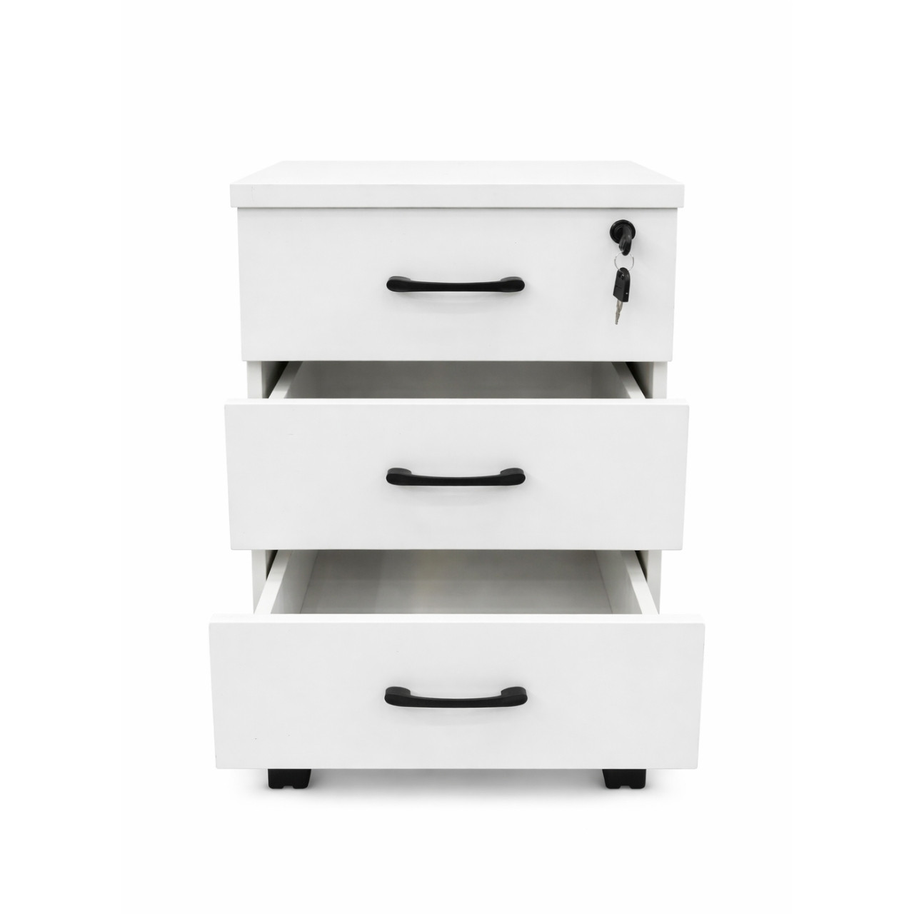 The top compartment features a built-in lock with a matching key, making it ideal for important documents, personal items, or valuables. The two lower drawers provide generous room for stationery, office supplies, clothing, or household essentials. Its smooth-rolling castor wheels allow you to move the unit easily, whether you’re rearranging a workspace or shifting it for cleaning.