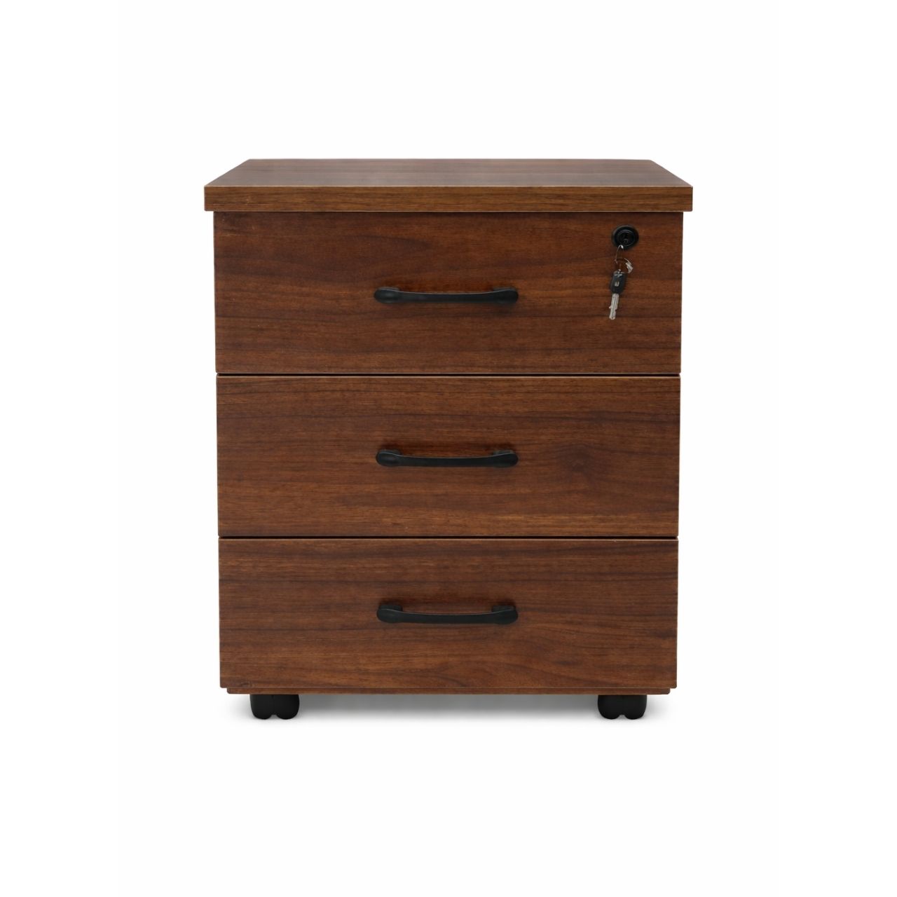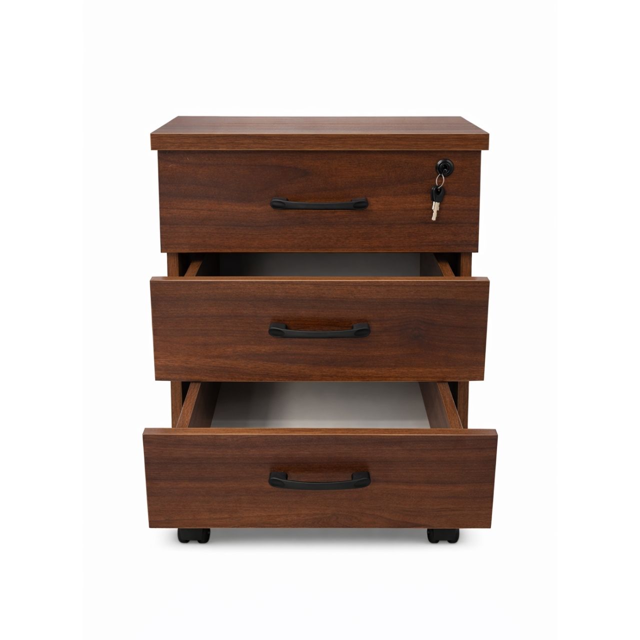 Modern 3-Drawer Lockable Chest – available in White or Walnut. Features a lockable top drawer for security, two spacious drawers for storage, sturdy black handles, and caster wheels for mobility. Stylish, functional, and perfect for home or office use.