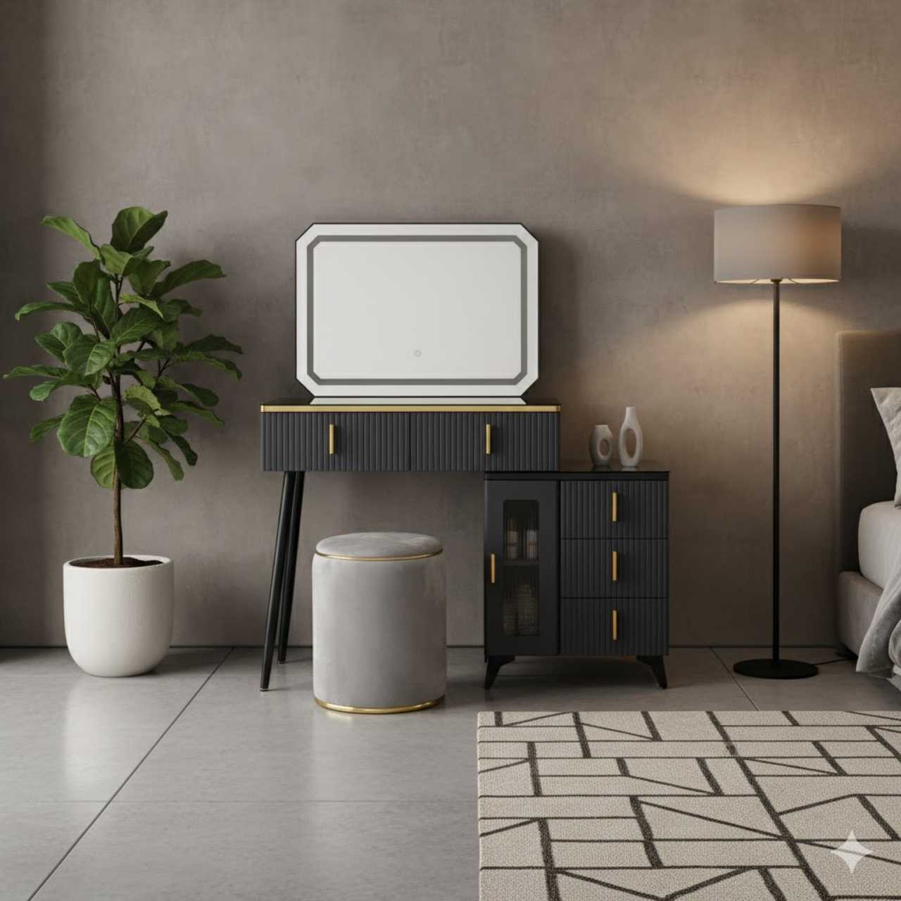 The Modern Grey Dressing Table Set with LED Mirror MWMDRT05 features a stylish grey finish with gold accents, combining elegance and functionality. This set brings a touch of modern sophistication to any bedroom or dressing area.