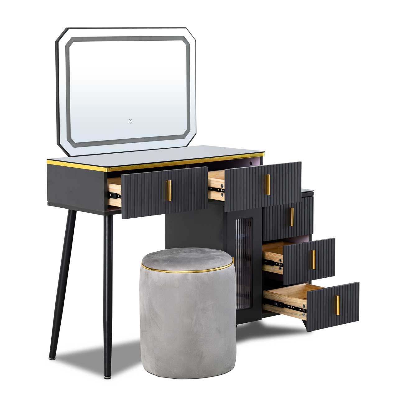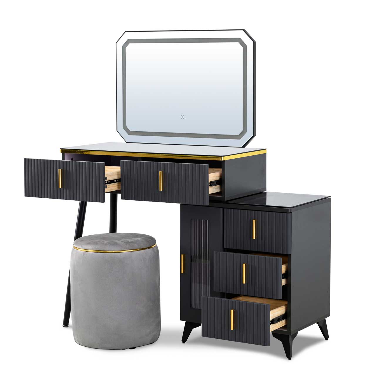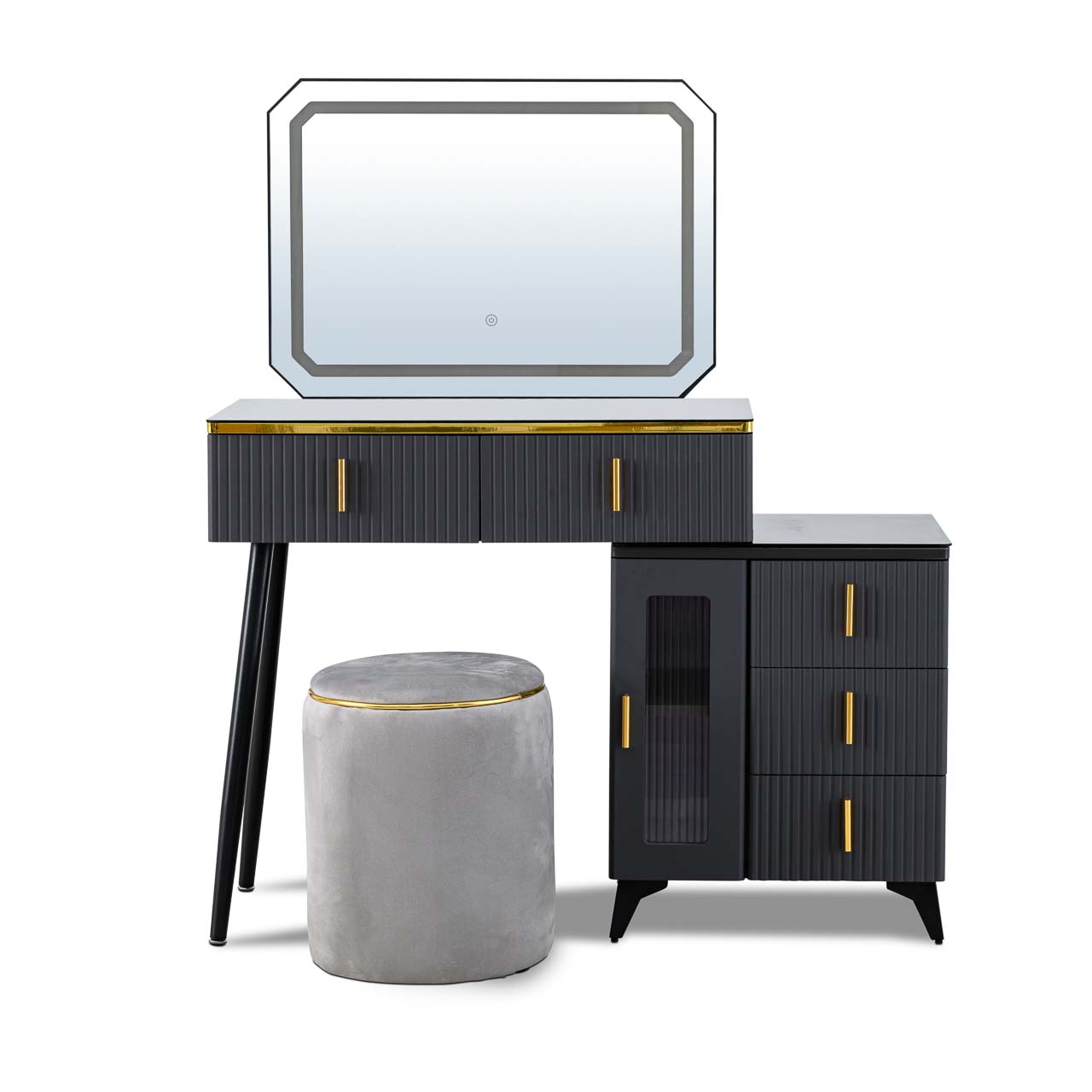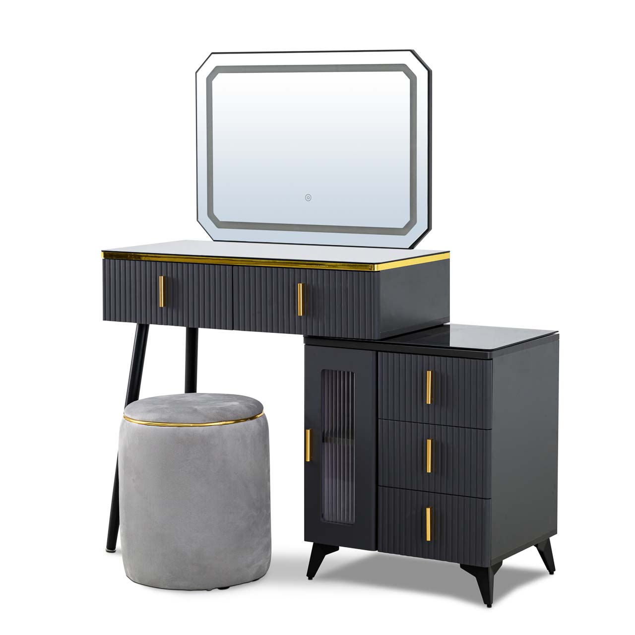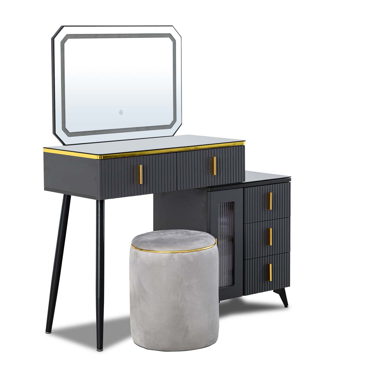 Modern Grey Dressing Table Set with LED Mirror – MWMRDRT05