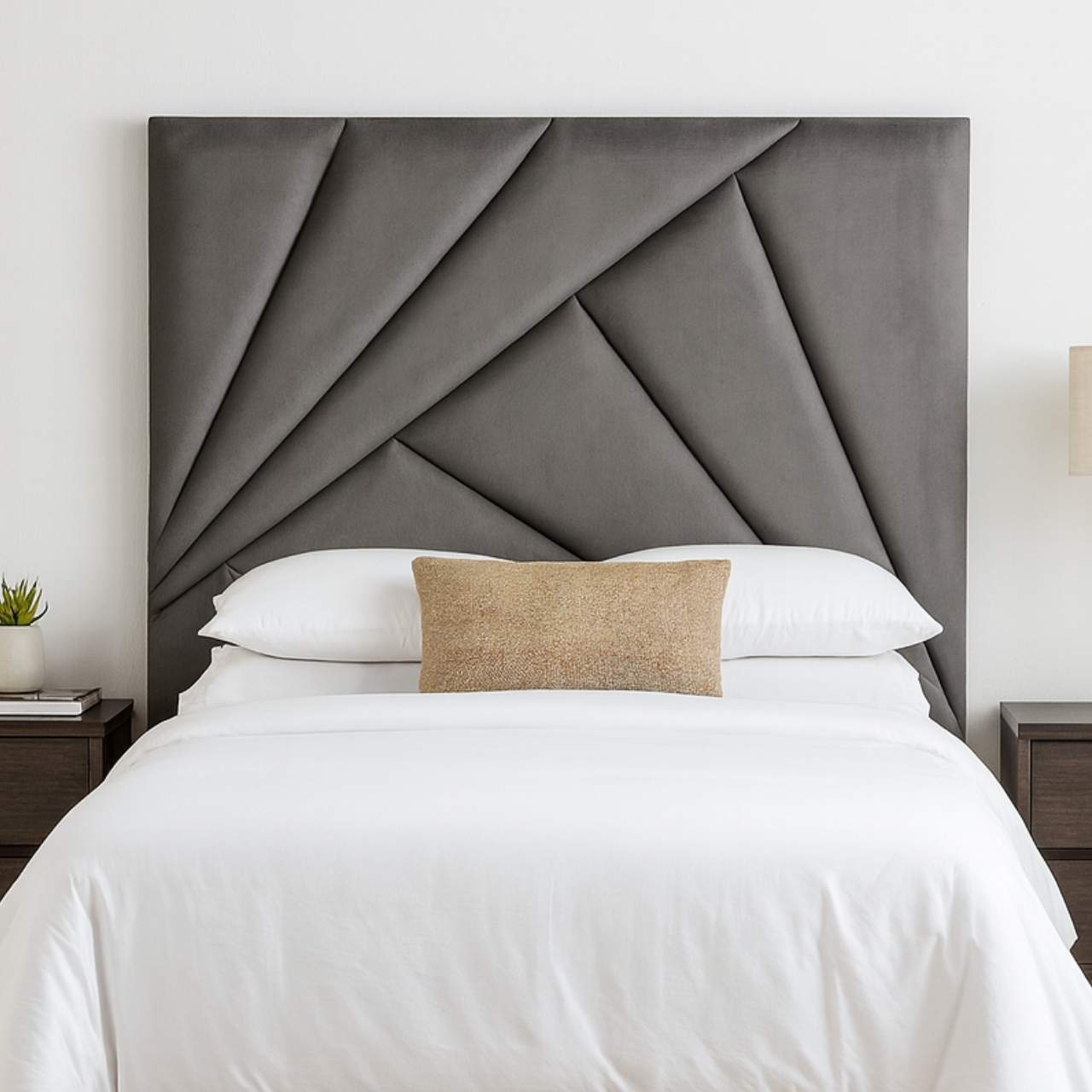 The Milano Headboard brings a refined, modern look to any bedroom with its premium grey velvet upholstery and bold geometric pleated design. This modern grey velvet headboard combines elegance with comfort, making it the perfect statement piece for contemporary living spaces. Because the Milano Headboard features a dramatic fan-like pattern, it adds depth, texture, and visual interest to your room the moment you walk in.