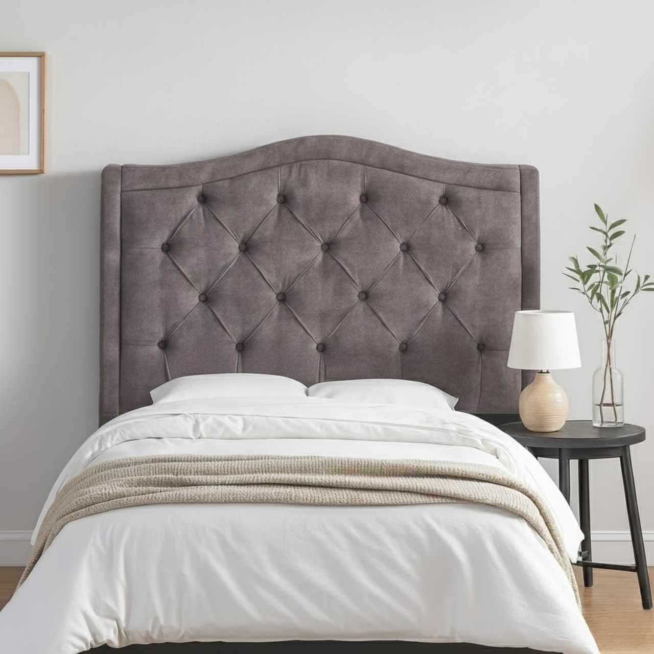 The Rafa Headboard – RAFA adds a luxurious, upholstered finish to your bedroom with soft padding, deep-button detailing, and a stylish curved design. It installs easily onto most bed bases and offers both comfort and elegance without replacing your entire bed.