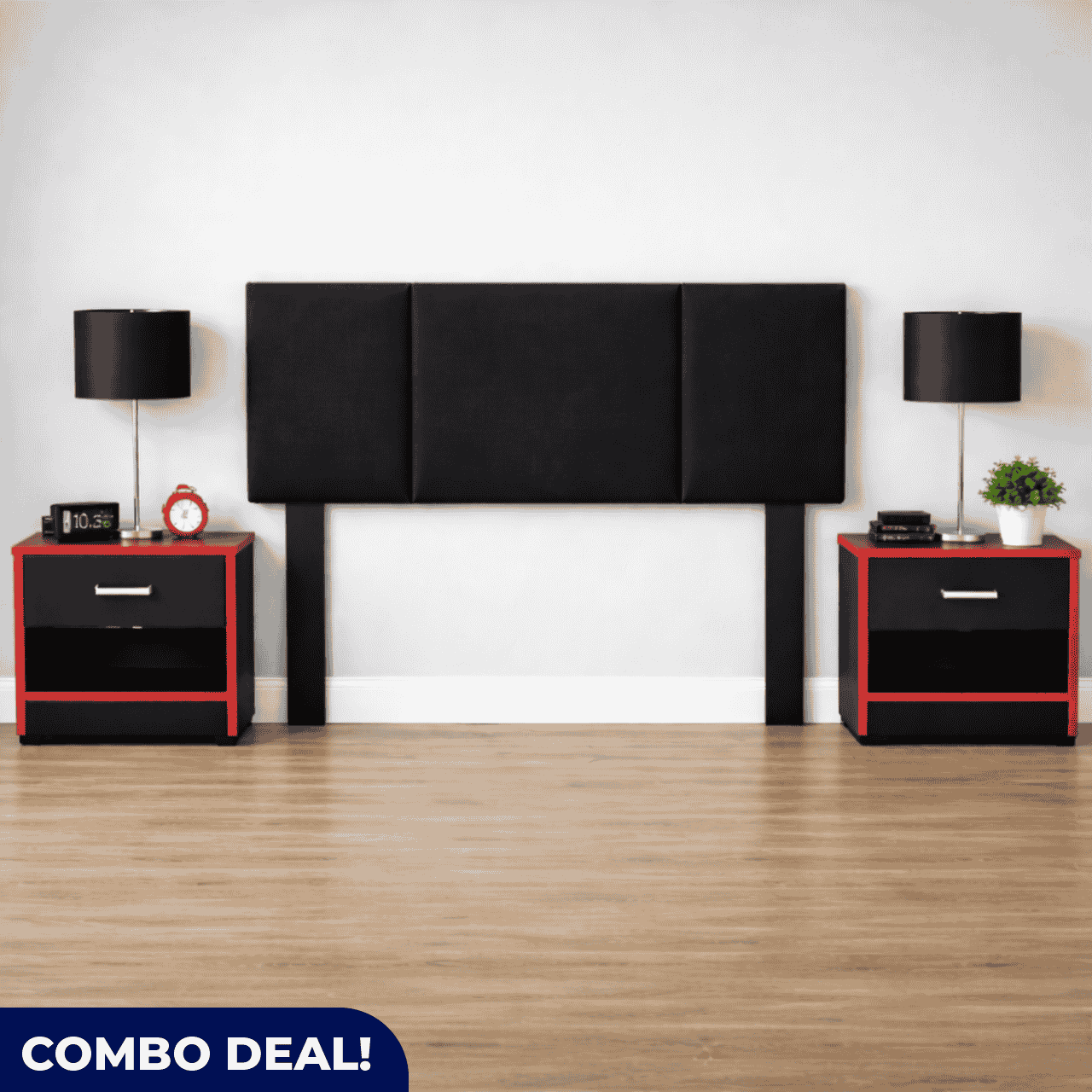 Vanessa 3-Piece Bedroom Combo – Headboard & 2 Nightstands (Black & Red)
