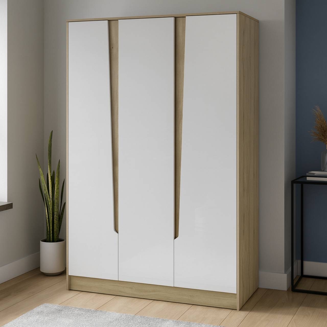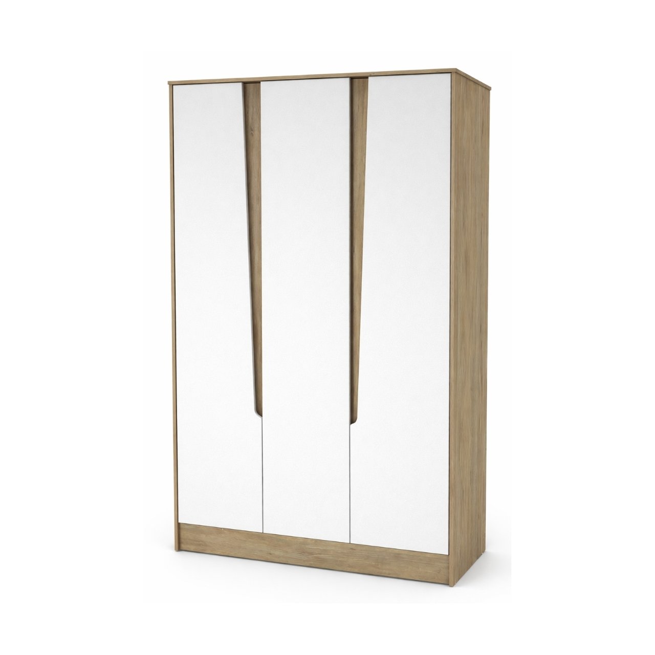 Modern 3 Door Wardrobe – Oak Ash and Snow White