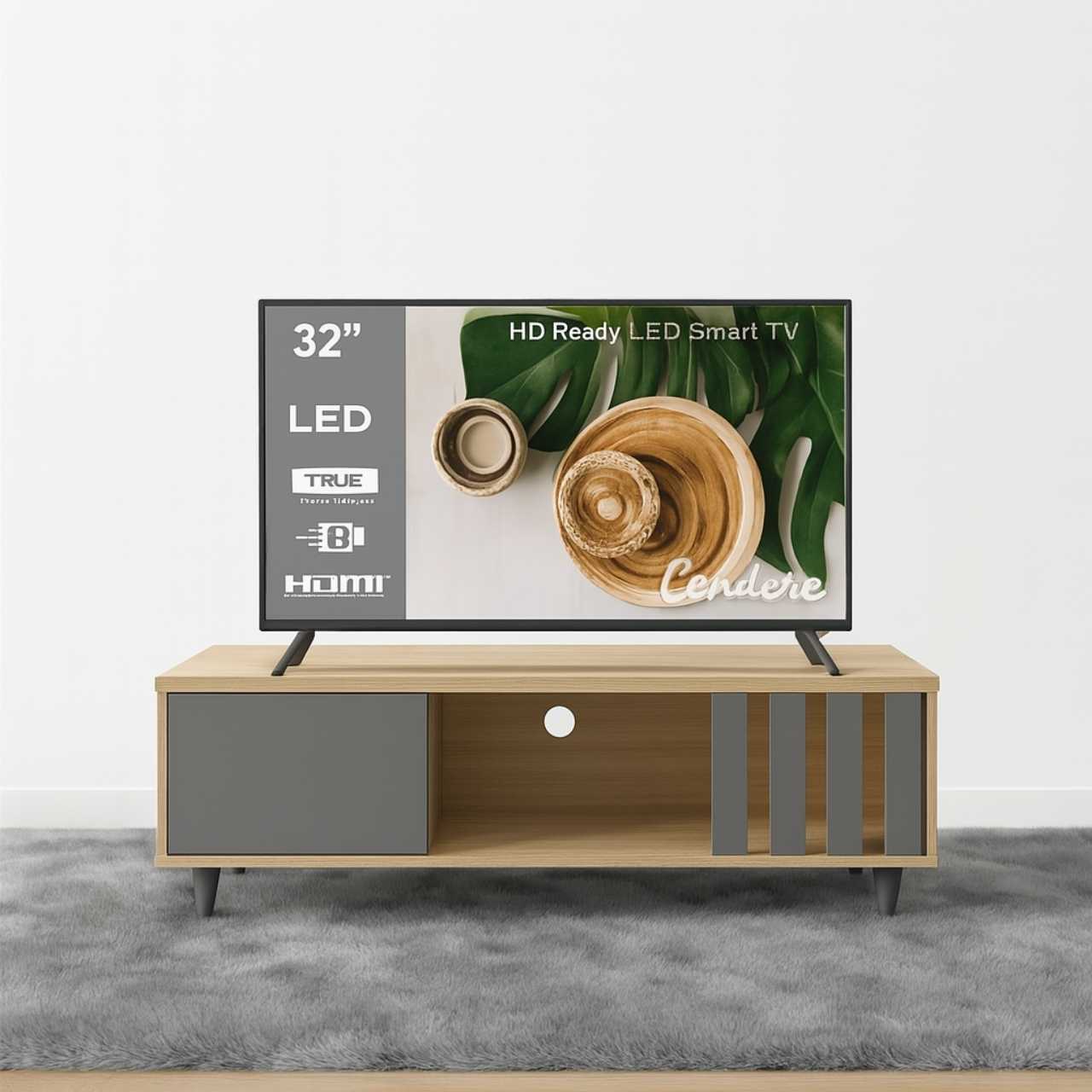 Condere 32″ LED Smart TV: HD Ready, Android system, HDMI/USB ports, energy-efficient LED screen, elegant matte finish.