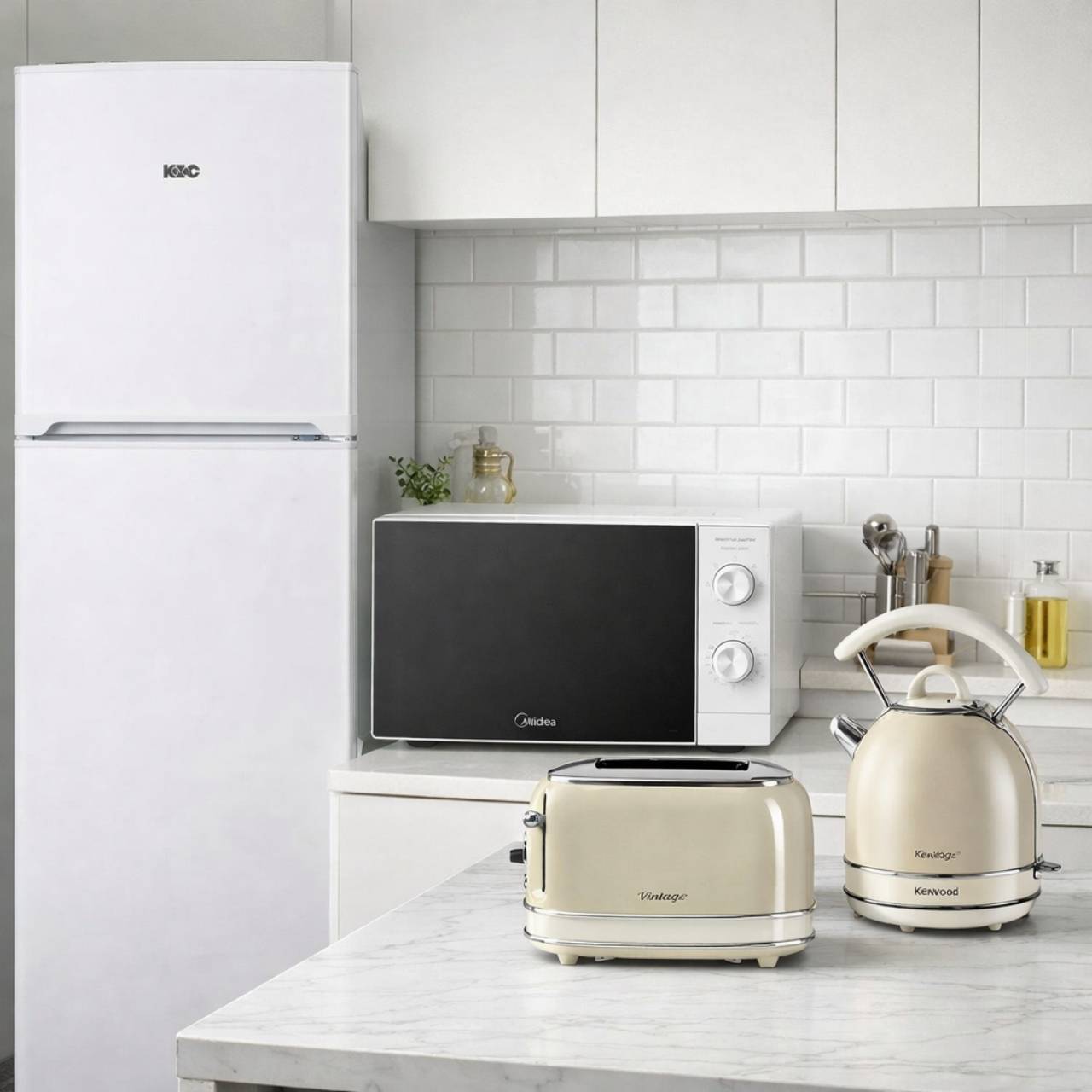 This Everyday Student Bundle includes a 170L fridge KTF518WH, 20L microwave MM20W, and Kenwood vintage kettle and toaster ZJM35+TCM35. It supports food storage, quick meals, and easy breakfasts. Each appliance is compact and student-friendly. Ideal for university residences and shared accommodation.