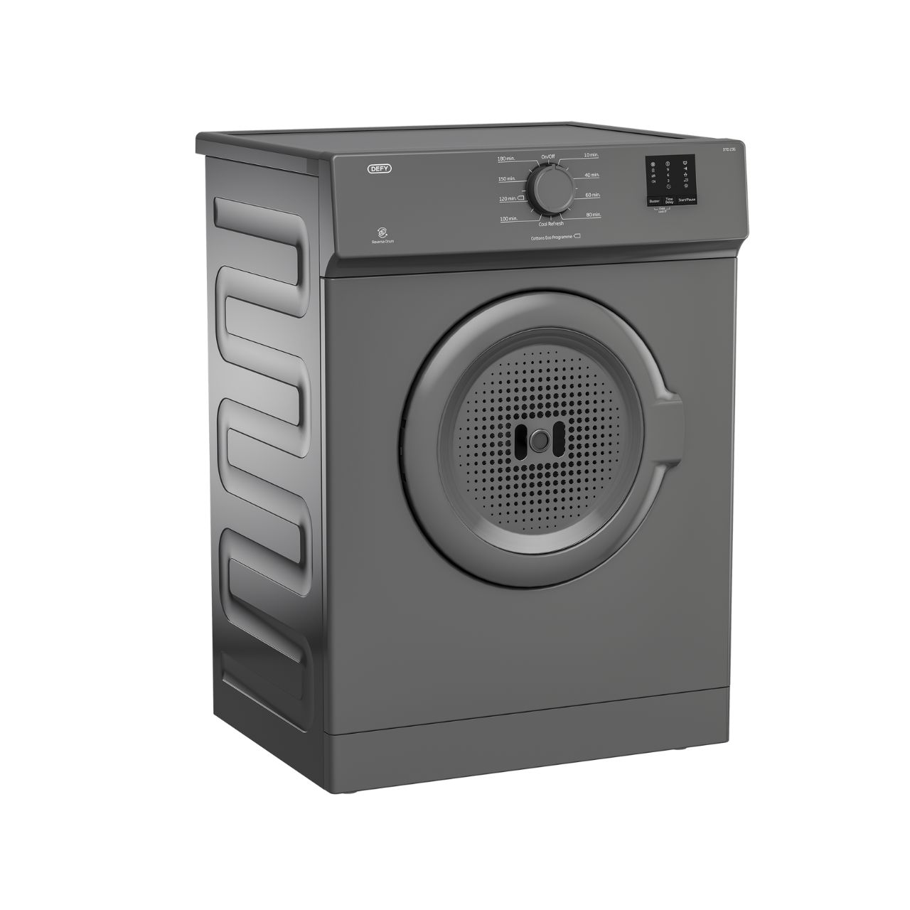 The DTD236 features a reverse-action drum, which helps dry clothes evenly while reducing creases. You can choose from eight drying programs to match different fabrics, load sizes, and desired dryness levels. This dryer helps keep clothes in top condition while cutting down on ironing time. The easy-to-use controls, including a timer dial and LED indicator lights, ensure smooth operation.