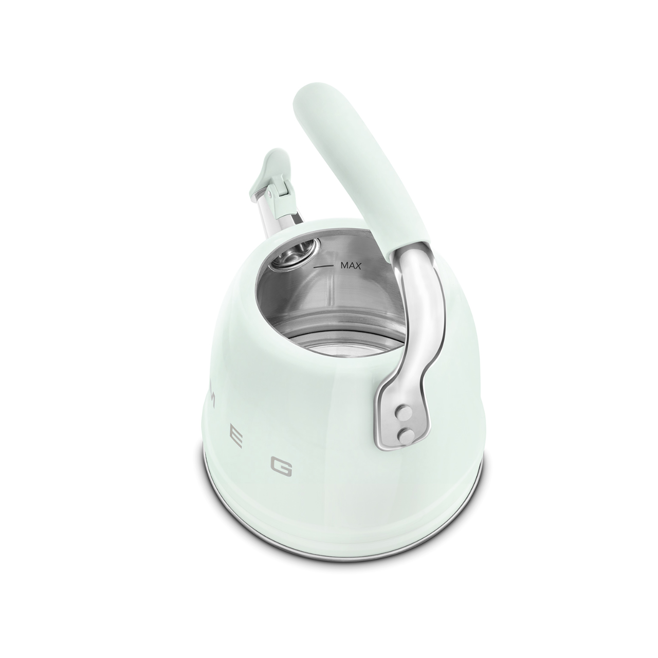The Smeg stovetop kettle CKLW2001PG is compatible with a range of cooking surfaces, including induction, gas, ceramic, and electric stoves. This versatility makes it a great option for any kitchen setup. The manual lid opening and water level indicator allow for easy operation and monitoring.