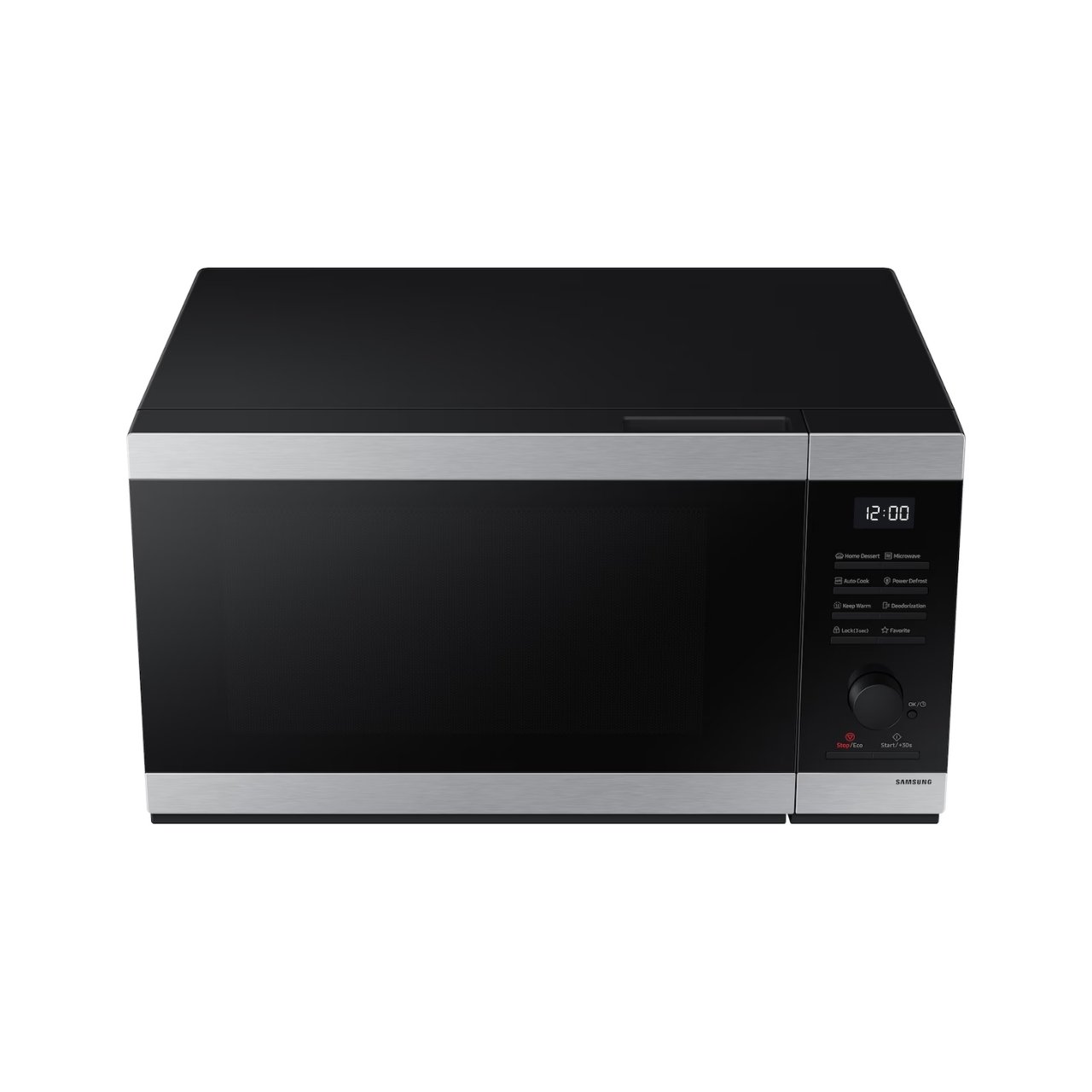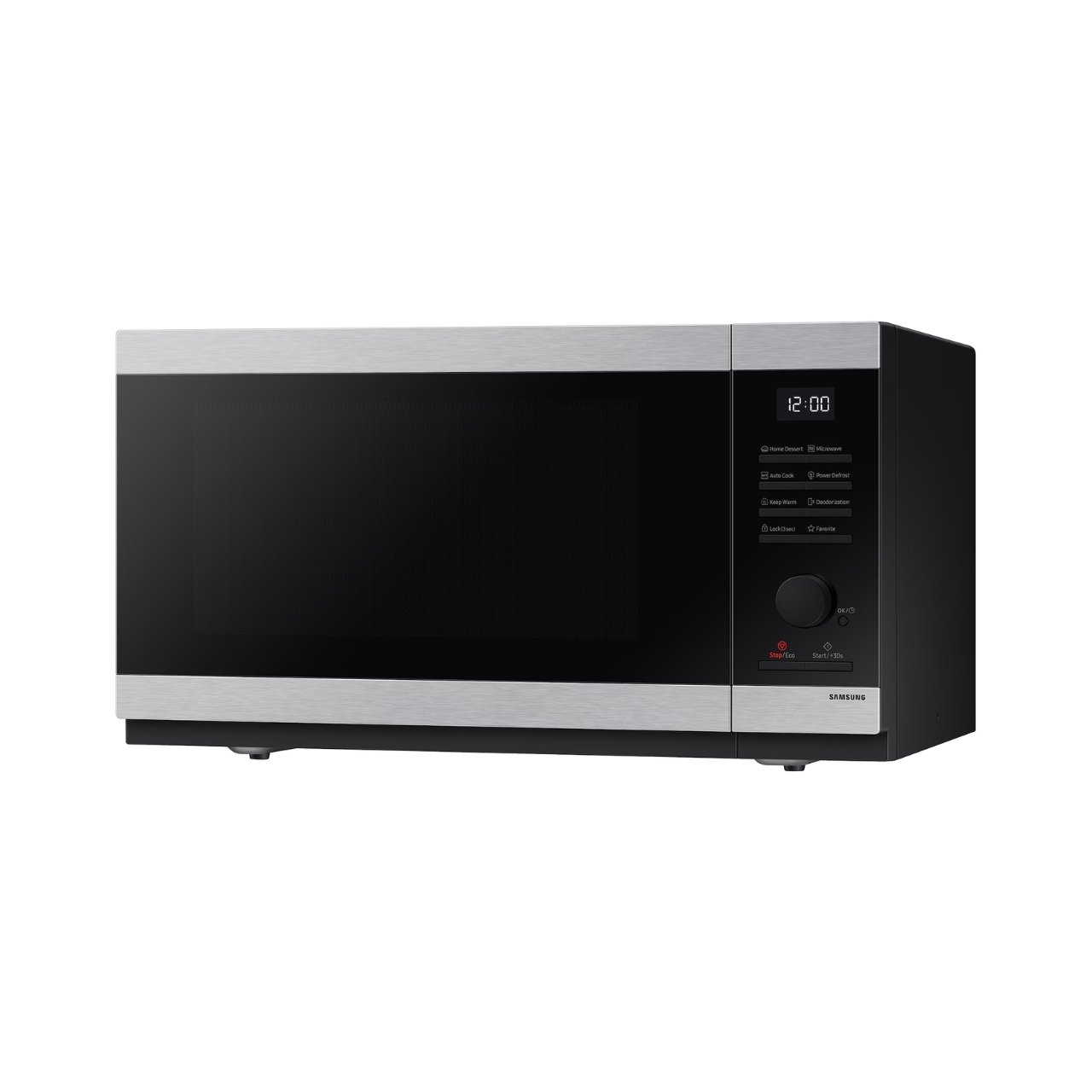 The microwave features Auto Cook menus with 15 pre-programmed dish types, plus a “30 sec Plus” quick-start shortcut. In addition, the Samsung 40 L Grill Microwave includes an eco-mode to minimise standby power consumption.