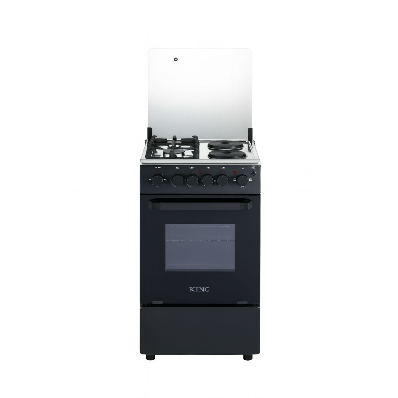 The King KGEP522BI Stove features 2 gas burners, 2 electric plates and a built-in oven. It delivers flexible, reliable cooking with a modern black design and protective glass lid.