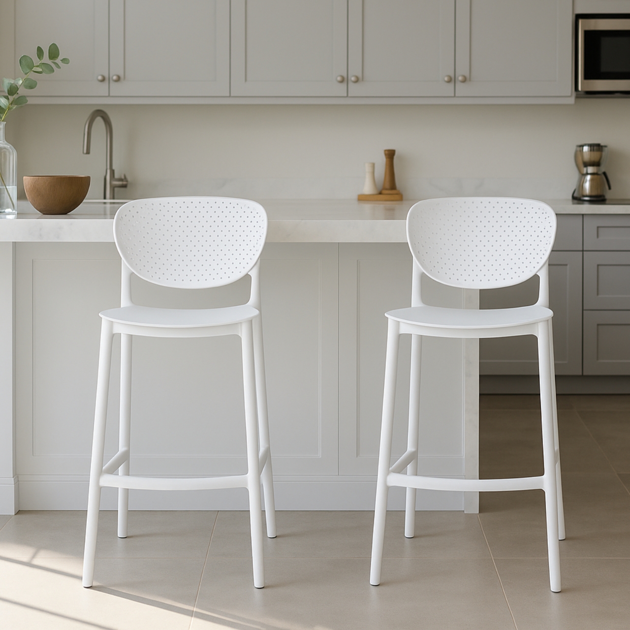 Upgrade your seating with the Modern Set of 2 Perforated Plastic Bar Chairs – MWBC65. These stylish chairs bring comfort, durability, and a modern look to your home. Available in white, grey, and black, they fit perfectly in kitchens, dining areas, cafés, or entertainment spaces.