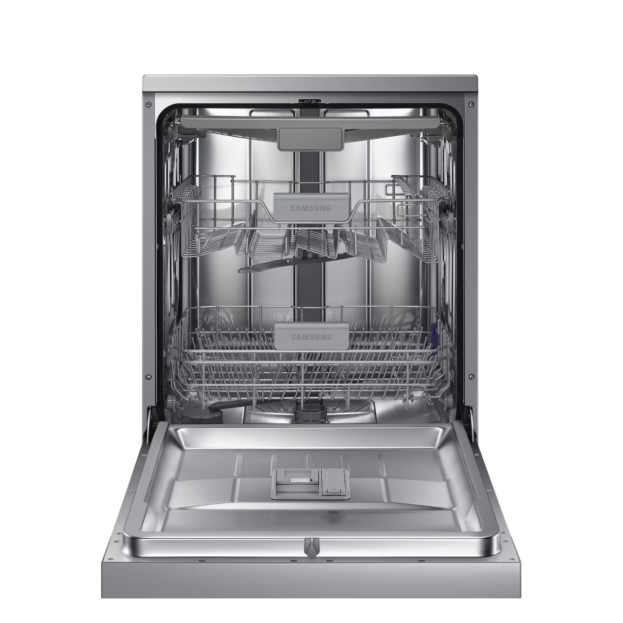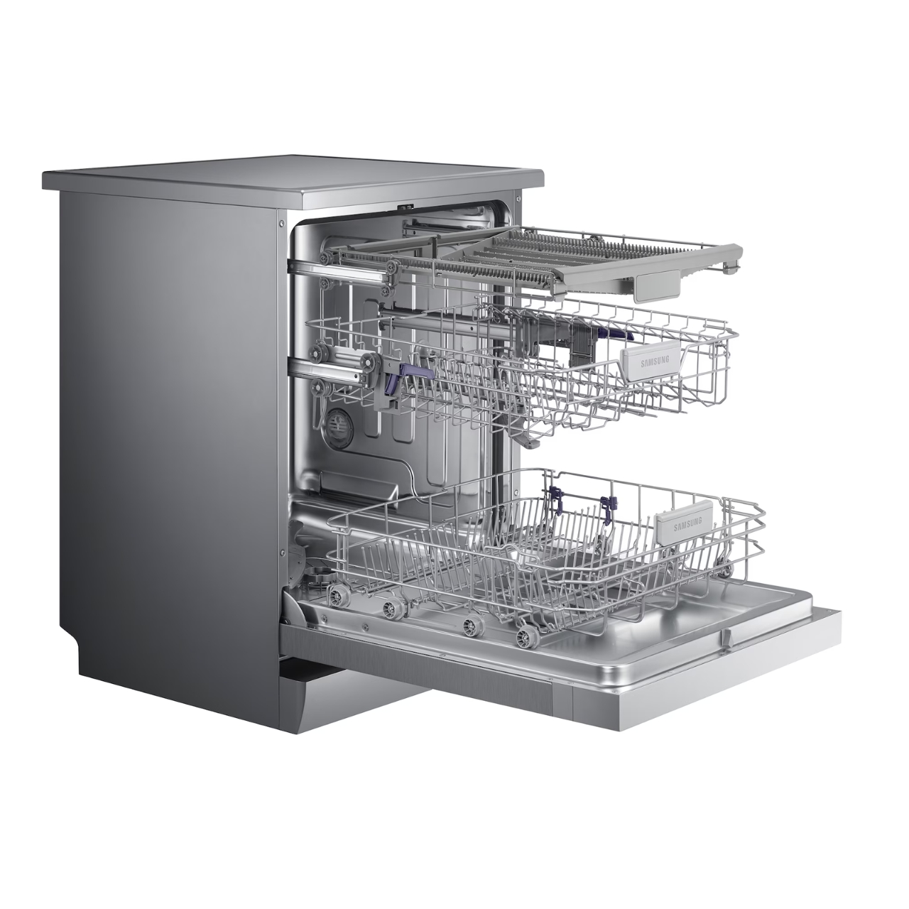 The Samsung 14-Place-Setting Dishwasher offers powerful cleaning with modern convenience. Its sleek stainless-steel design blends seamlessly into any kitchen. Designed for efficiency and performance, this freestanding dishwasher handles large loads with ease.