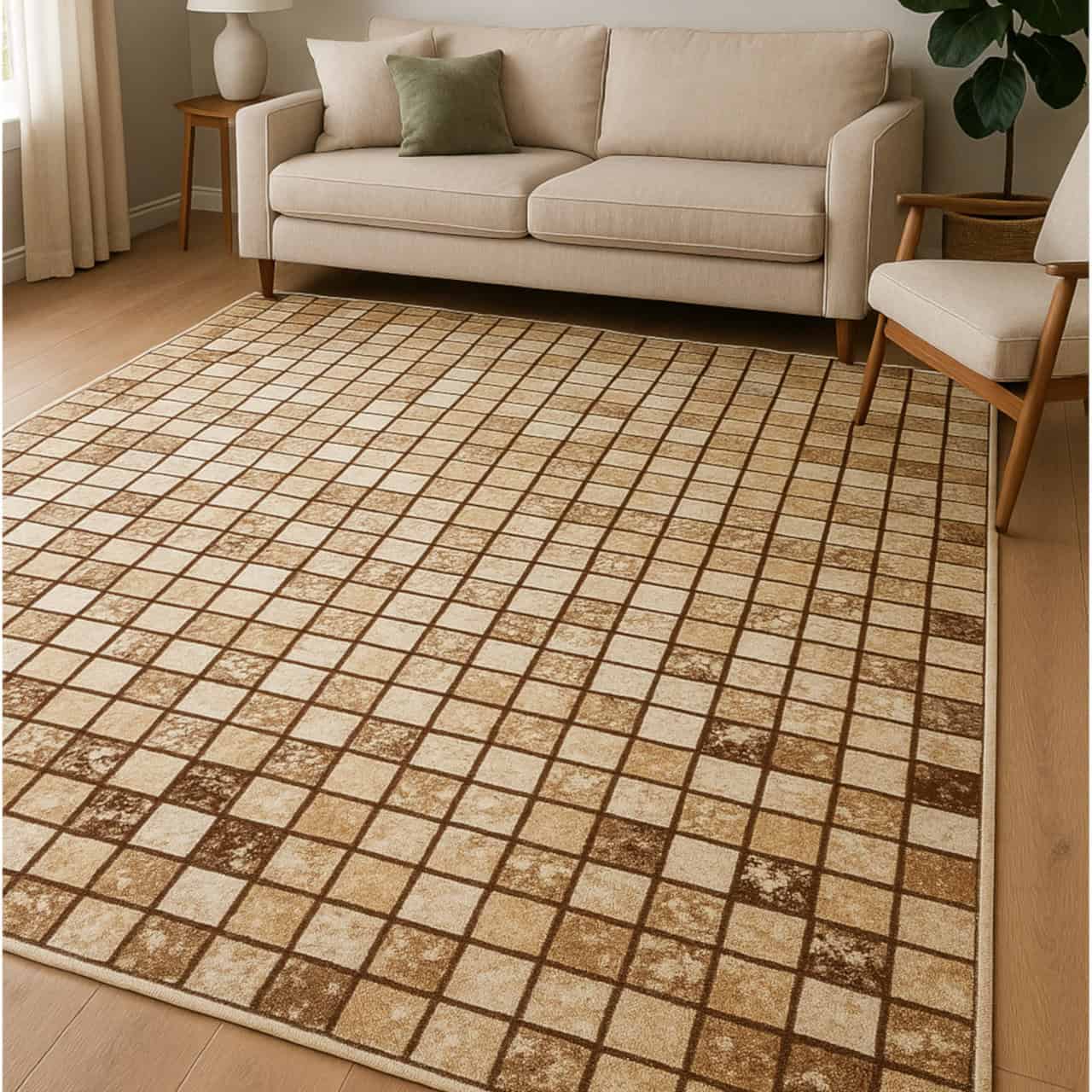 Crafted for both durability and comfort, this carpet not only looks luxurious but also feels soft underfoot. Its multi-tone checkered layout brings visual interest and can easily complement both neutral and bold interior color schemes. Designed to be a statement piece, it captures the eye without overwhelming the space.
