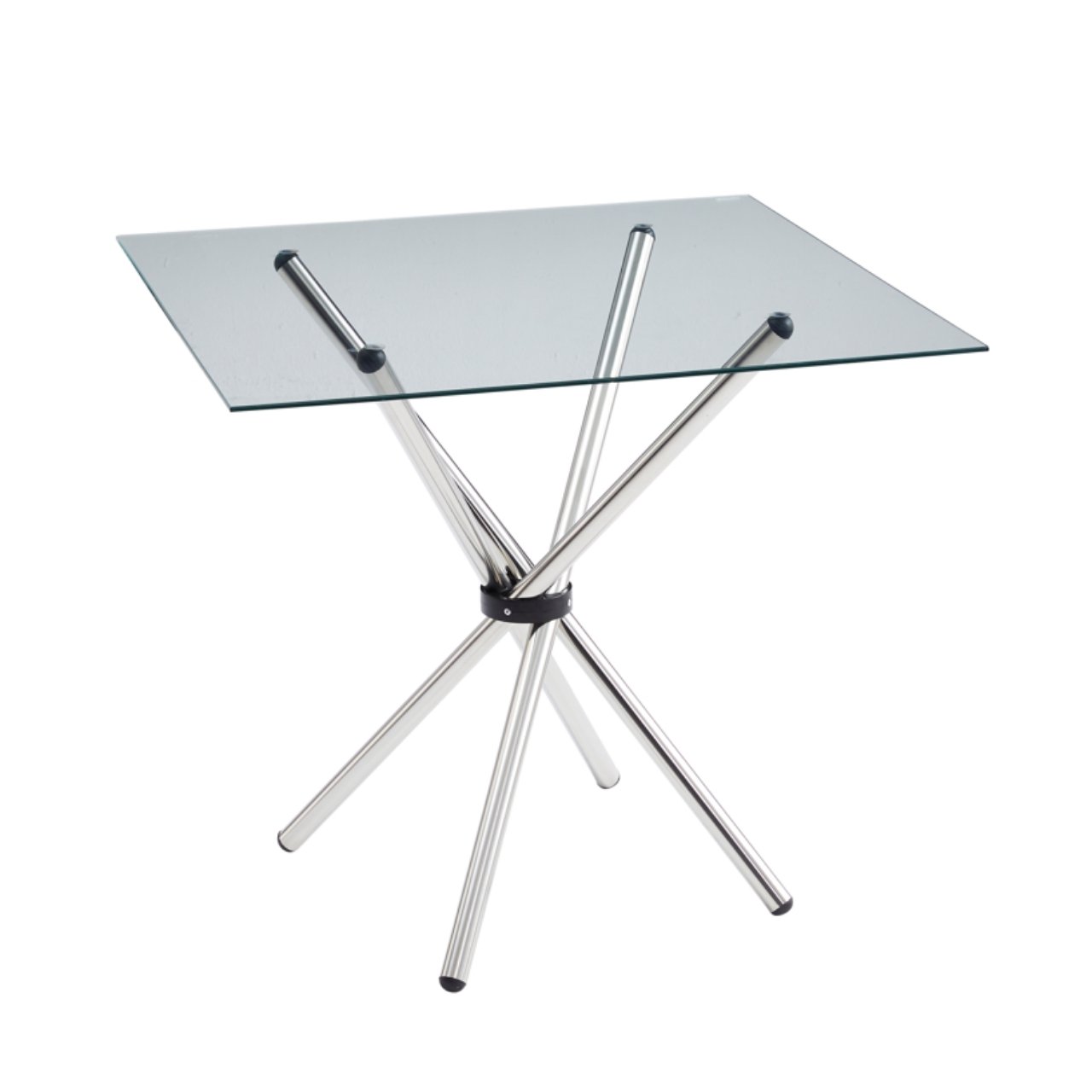The clear glass tabletop sits securely on a chrome-finished metal frame, creating a light and open feel in the room. In addition, the intersecting leg design adds a sculptural, modern touch while improving stability. Therefore, you get a table that looks premium while still offering reliable support.