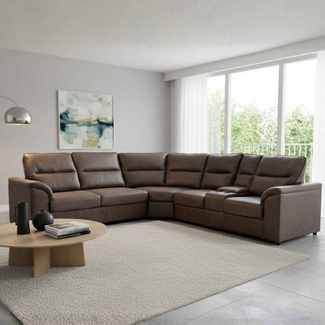 Its L-shaped structure is designed to maximise space. Whether you place it in a small apartment or a larger lounge, it fits neatly into room corners while still offering wide seating areas. The built-in centre console section adds convenience, giving you a spot for drinks or remotes.