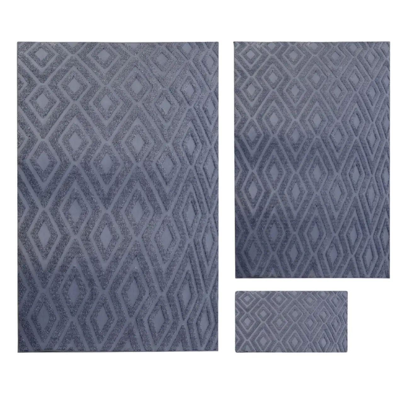 This combo set is ideal for styling different areas of the home with a matching look. Use the larger carpet as the main feature in your living room or bedroom, while the smaller pieces can be placed in passageways, entrances, or beside a bed. Additionally, it can work well in an office or reading corner where you want to add softness and a more finished appearance. Because of its coordinated design, decorating multiple spaces becomes simple and effective.