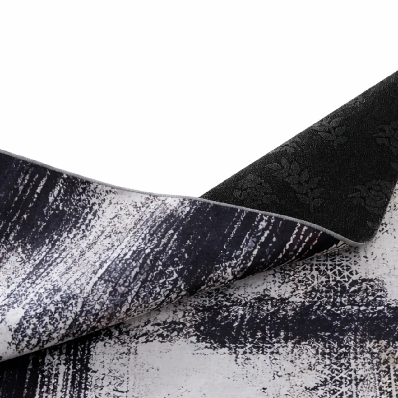 Add bold style to your space with this modern abstract black and white printed rug. Its high-contrast pattern, soft textured look, and contemporary finish make it ideal for living rooms, bedrooms, and offices. Additionally, the neutral palette pairs easily with modern interiors while creating a strong visual statement.