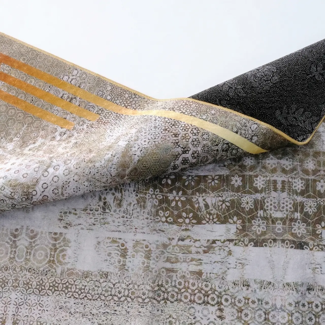 Product Name: Modern Abstract Gold Border Printed Rug