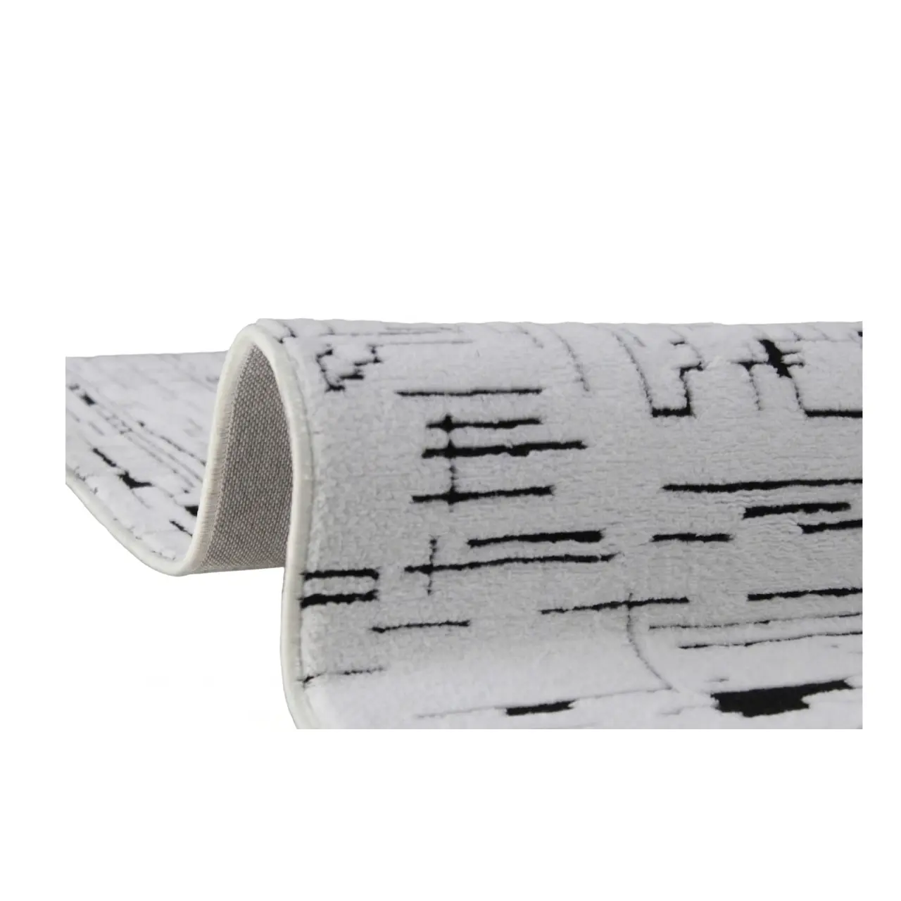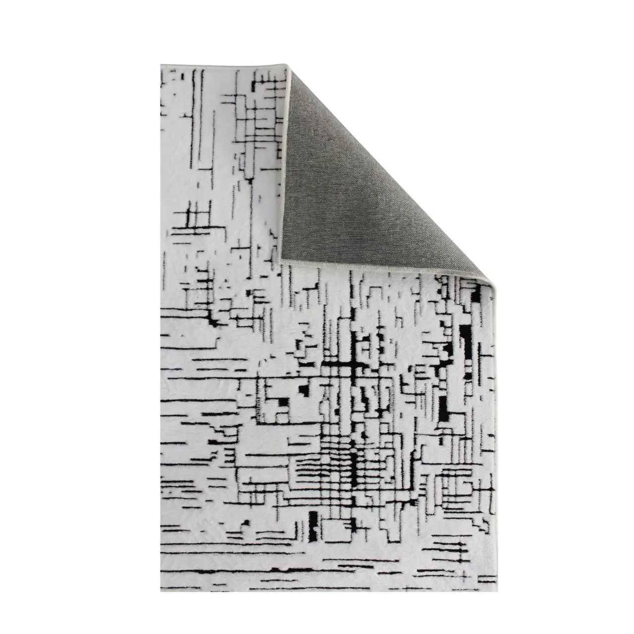 The carpet features a unique abstract pattern with fine linear detailing. In addition, the grey tones create a clean and versatile look. Because of this, it blends effortlessly with modern, minimalist, and industrial interiors.