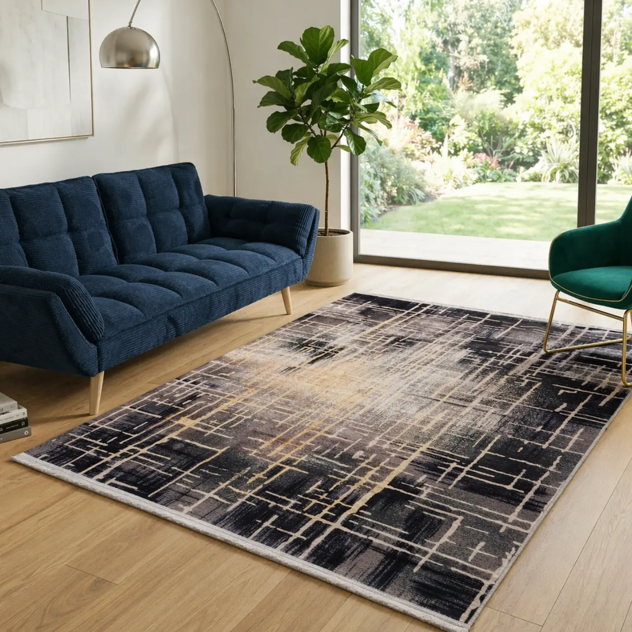 Product Name: Modern Abstract Midnight Grid Printed Rug