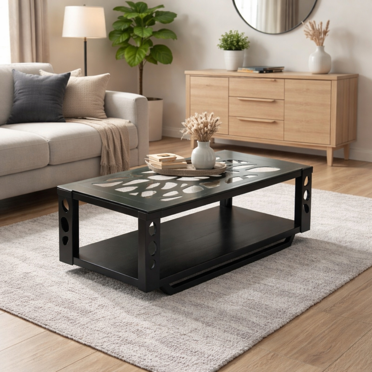 Modern Black Laser-Cut Coffee Table – MWCT243