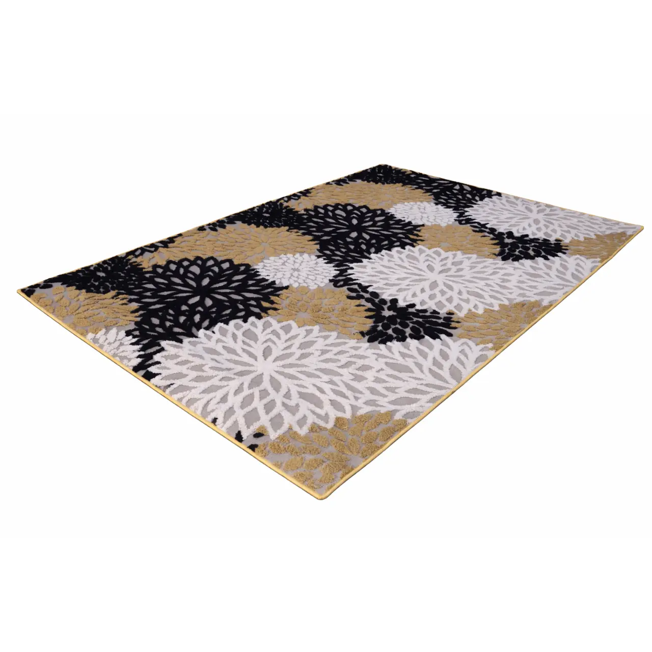 This carpet features a striking oversized floral pattern with a modern decorative feel. The design blends beige, black, white, and soft grey tones, which gives it a balanced look that feels warm and contemporary. Because of this contrast, the pattern stands out beautifully while still working well with a wide range of interiors. It suits modern homes, stylish apartments, elegant bedrooms, and sophisticated living areas. As a result, it can act as both a grounding piece and a visual feature in the room.