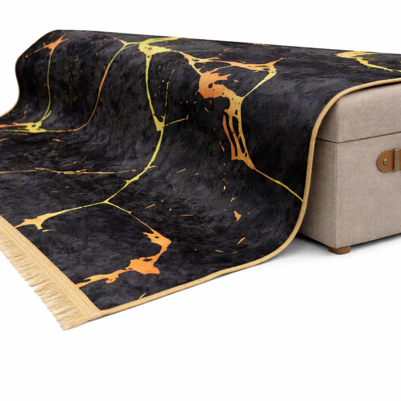 Enhance your space with this striking carpet that introduces bold contrast and artistic energy into any room. Its dramatic dark base combined with vibrant splatter-like veining creates a powerful visual statement. As a result, this rug adds depth, intensity, and a contemporary edge that instantly transforms the atmosphere of your space.