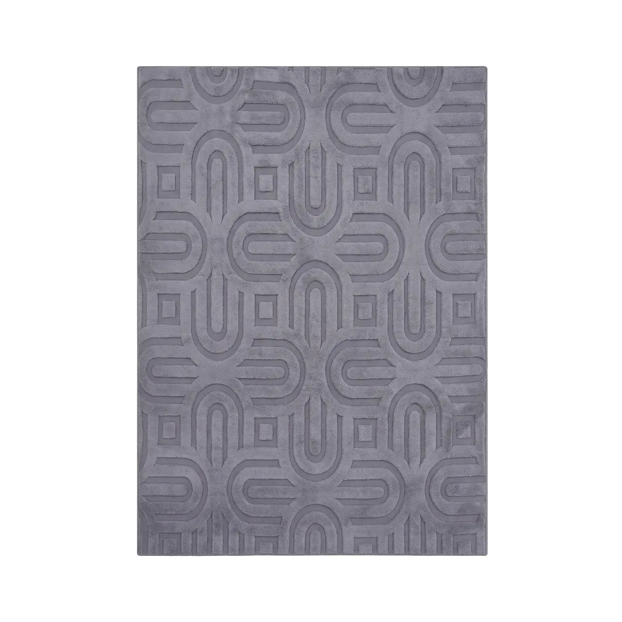 This carpet features a striking geometric pattern with curved lines and structured shapes arranged in a repeating layout. Additionally, the tonal grey palette keeps the design subtle yet visually engaging. As a result, it offers a modern, almost architectural look that works beautifully in minimalist and contemporary spaces. Its sculpted pattern adds movement while maintaining a neat and organised feel.