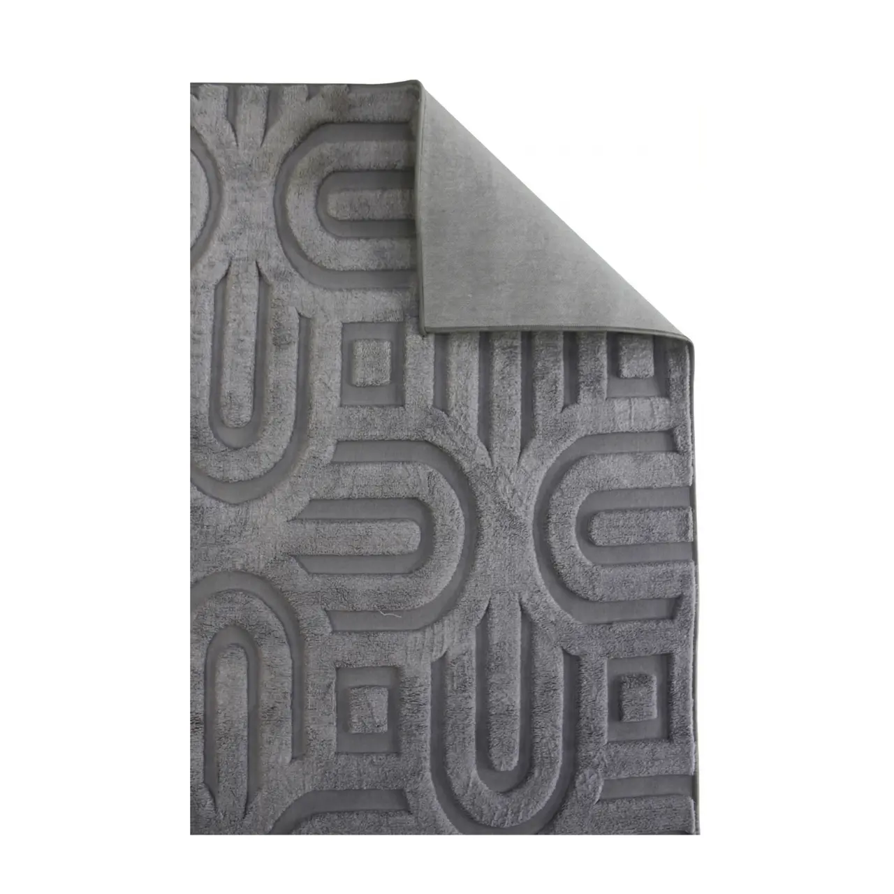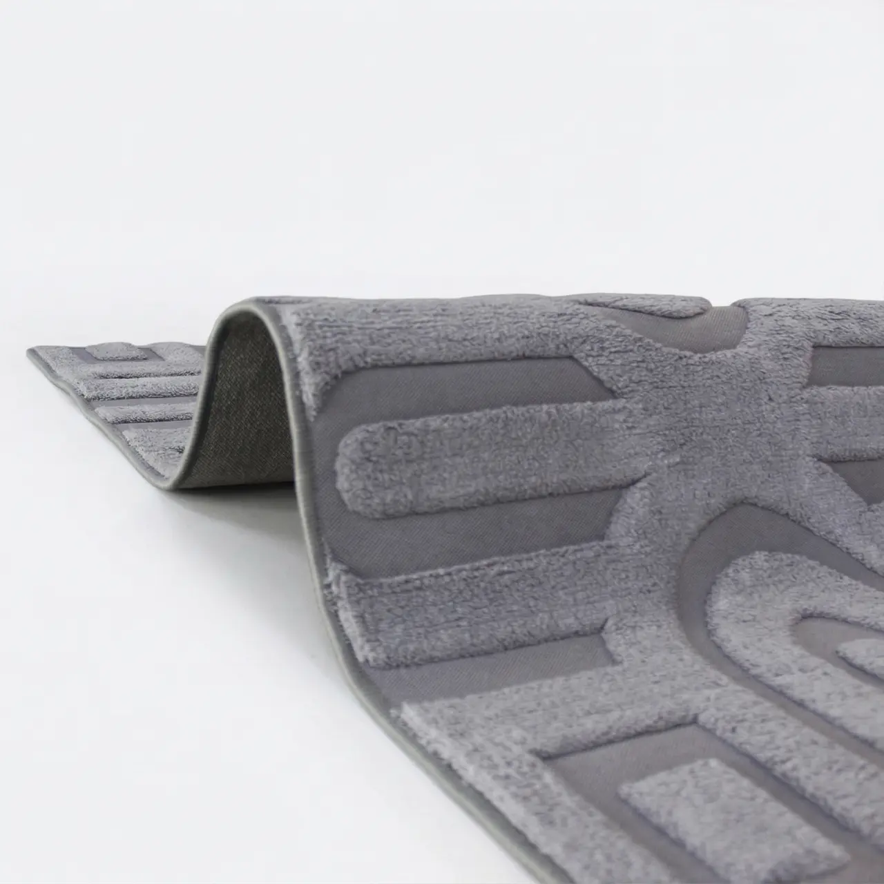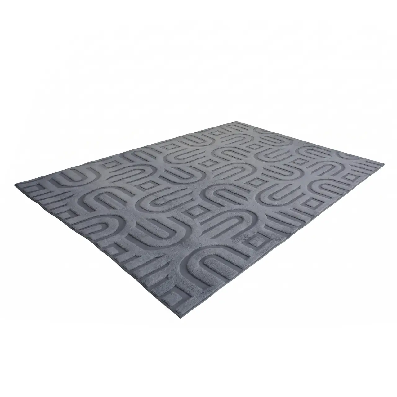 A modern grey carpet featuring a sculpted geometric pattern with a raised textured finish. Perfect for adding depth and style to contemporary spaces.