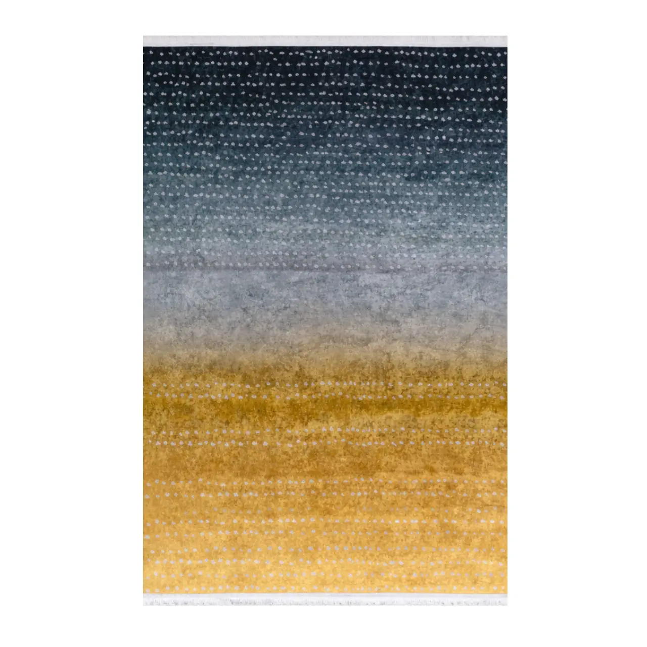 Enhance your space with this stylish carpet that brings bold contrast and modern elegance into the room. Its striking ombre-inspired design blends rich mustard tones into soft grey and deep blue, creating a dramatic yet balanced look. As a result, this rug adds instant visual interest while still feeling refined, contemporary, and easy to style in a wide range of interiors.