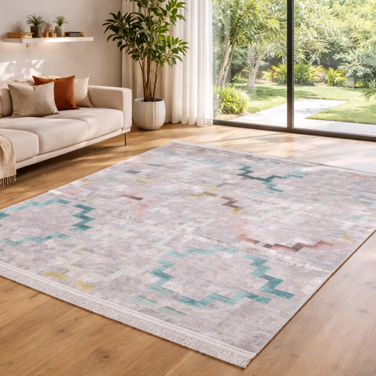Product Name: Modern Pastel Geometric Pattern Printed Rug