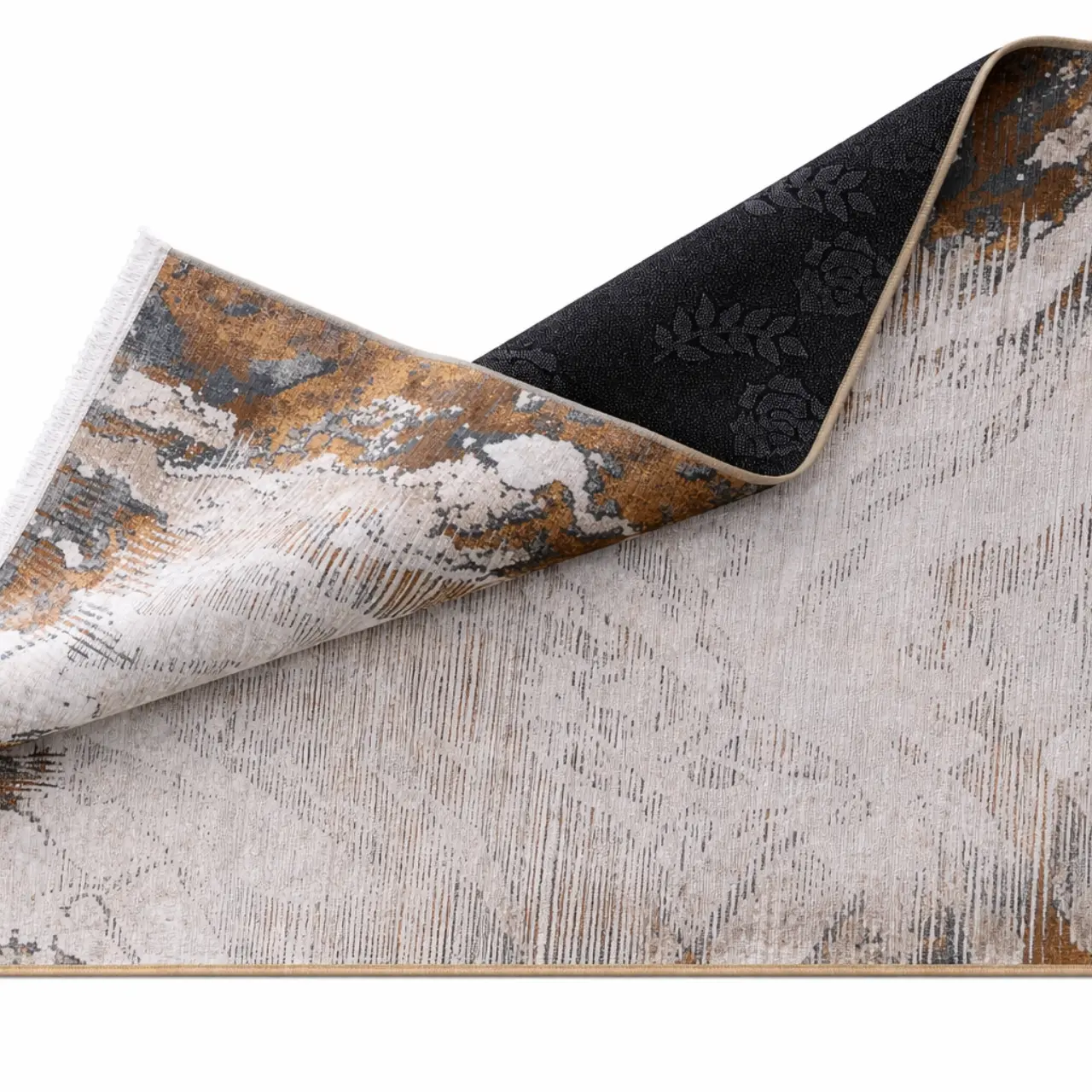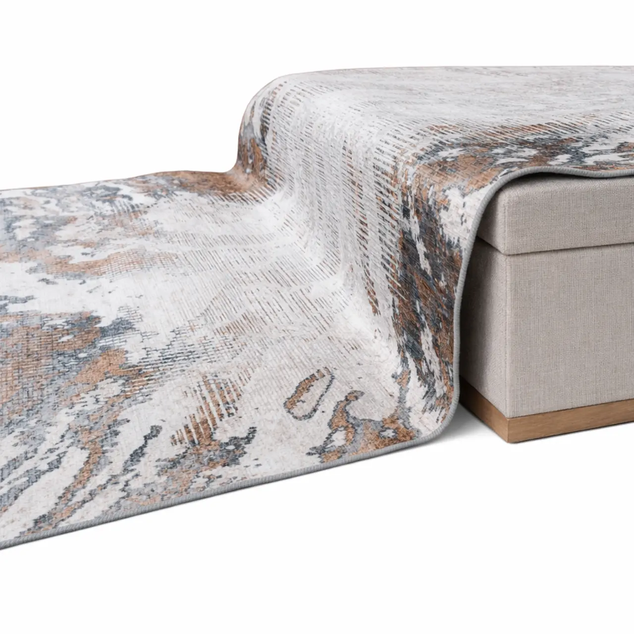 Transform your space with this modern abstract printed rug featuring a neutral cream base with rust and charcoal detailing. Its distressed design adds warmth and texture while maintaining a refined look. Additionally, the 160 x 220 cm size makes it perfect for living rooms, bedrooms, and offices, offering a stylish and versatile foundation that complements both modern and rustic interiors beautifully.