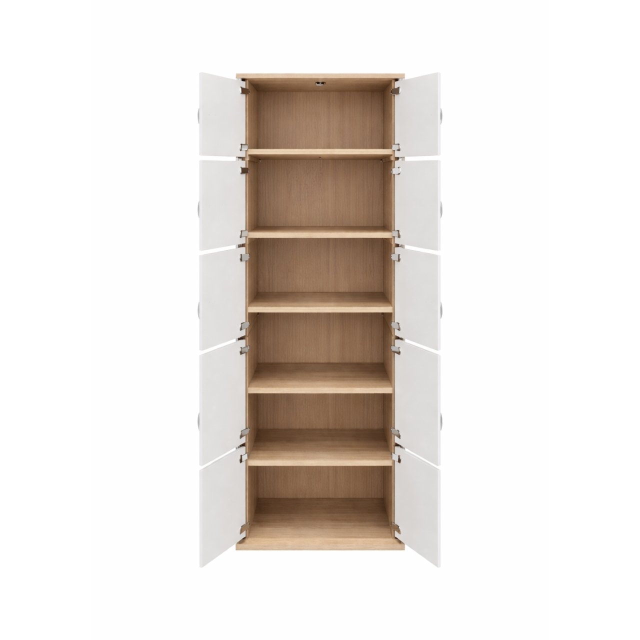 The 10 Door Cabinet in Grey Oak offers a stylish and practical storage solution, designed to enhance any space while saving valuable floor area. This tall cabinet features a sleek design with a narrow profile, making it ideal for smaller rooms where space is at a premium.