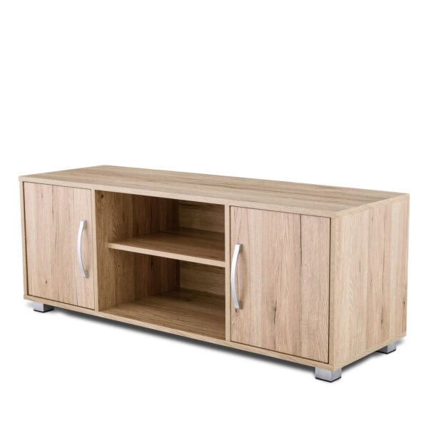 Modern Plasma Stand: Available in Sonama Oak + Dark Grey , ample storage, sleek design, easy maintenance.