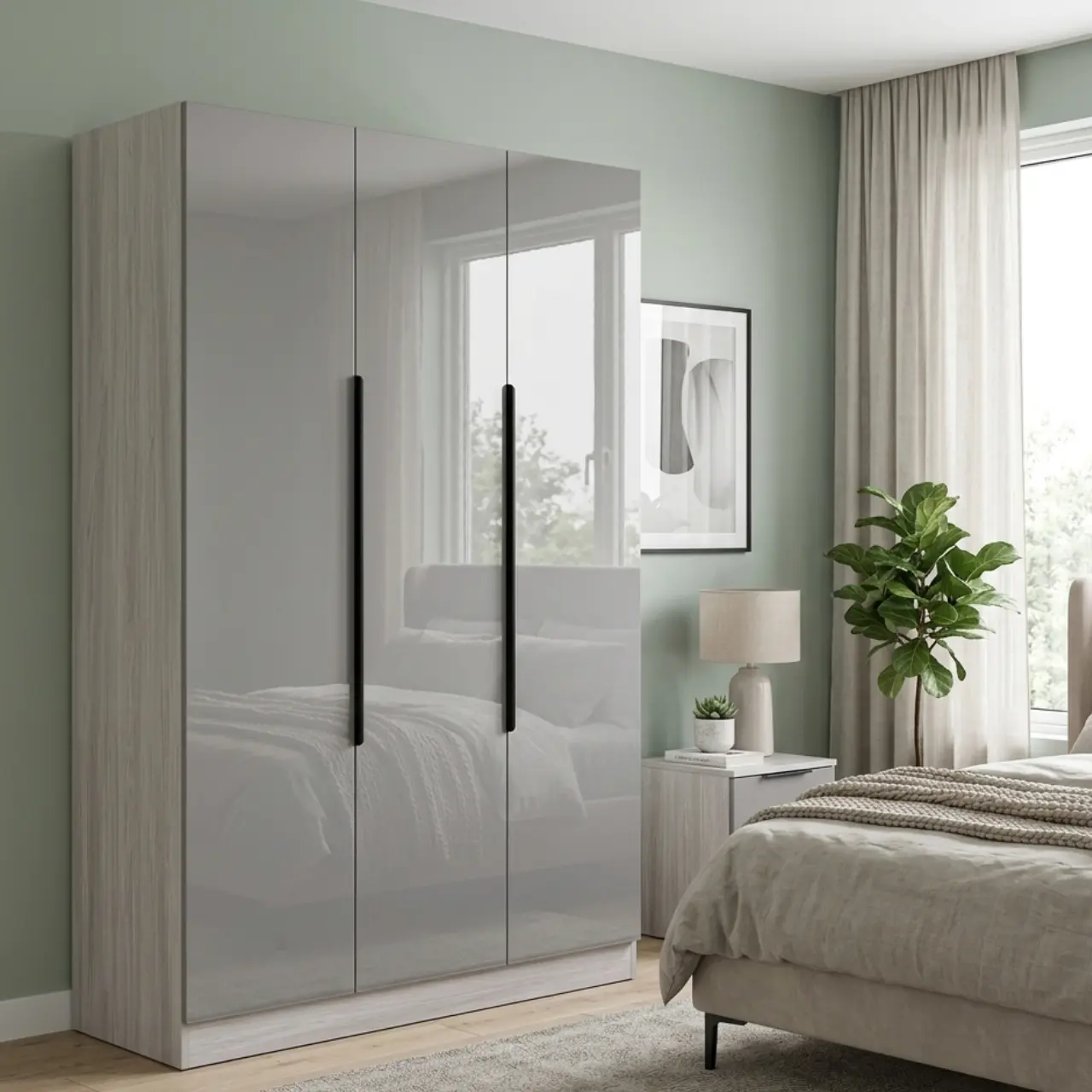Upgrade your bedroom with the 3 Door High Gloss Wardrobe, designed to combine modern style with practical storage. Crafted from durable 15mm superwood and finished in a sleek high-gloss surface, this wardrobe offers generous space to neatly organise clothing and accessories. Available in White, Champagne, Cappuccino, Mocha and Grey, it’s the perfect fit for contemporary interiors.