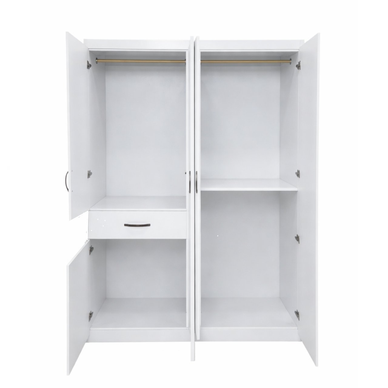 Five generously sized doors and one convenient drawer, this wardrobe offers ample storage space to keep your clothing, accessories, and essentials organized and within easy reach. The layout includes multiple hanging rails for clothing such as shirts, dresses, and jackets, along with internal shelves to store folded clothes, bags, or shoes. The drawer at the base adds an extra layer of functionality—ideal for storing undergarments, socks, or valuables.
