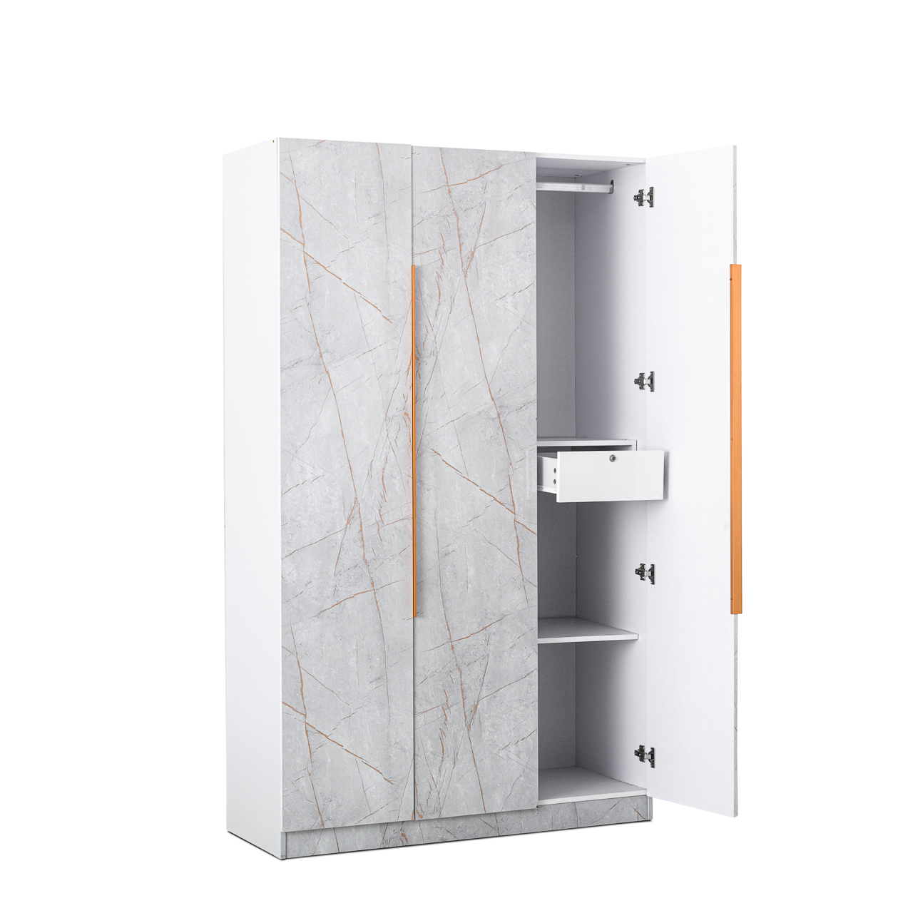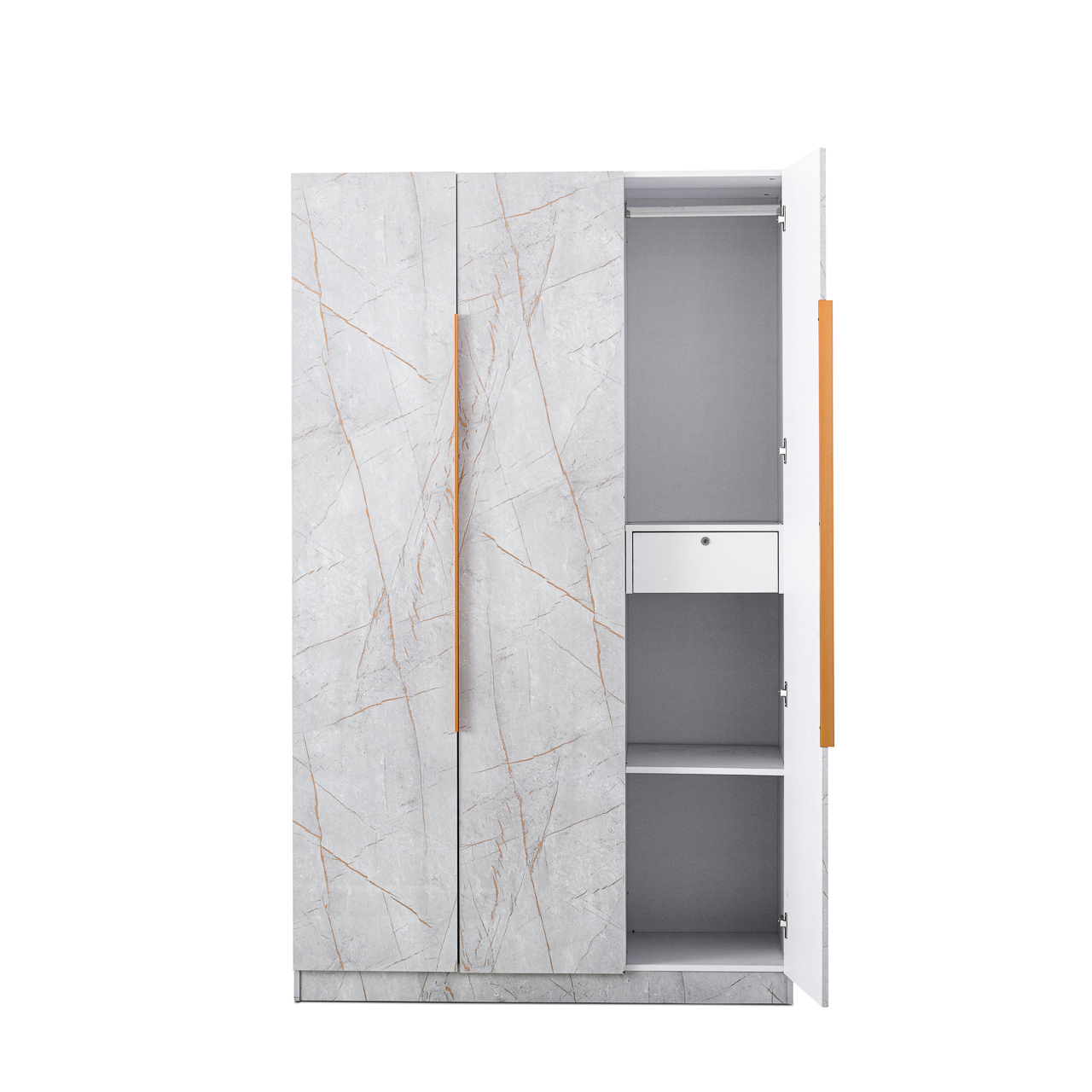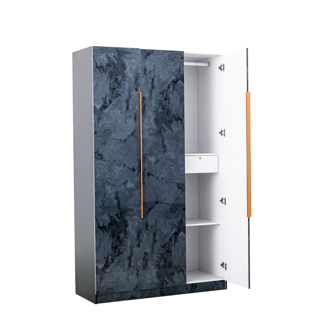 Crafted with meticulous attention to detail, the marble-inspired design adds a touch of opulence to your bedroom. The three doors open to reveal ample storage space, providing organization for your clothing and accessories while enhancing the overall elegance of your room.